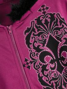 Fairycore Women's Floral Print Drop Shoulder Long Sleeve Zipper Front Pocket Fur Collar Fashion Hoodie, Autumn/Winter