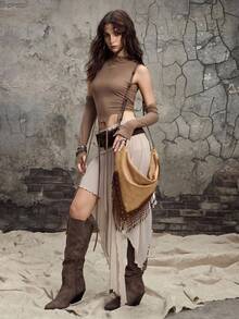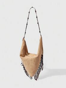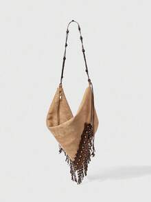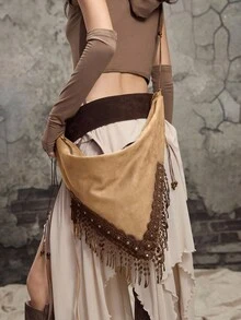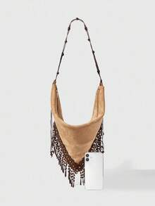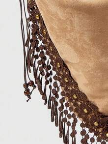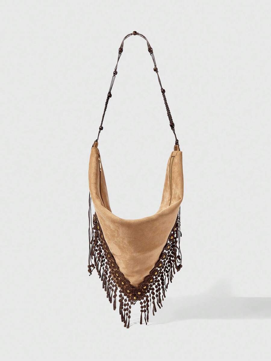 Fairycore Women's Fringe Design Embroidered Floral Edge Tote Crossbody Bag