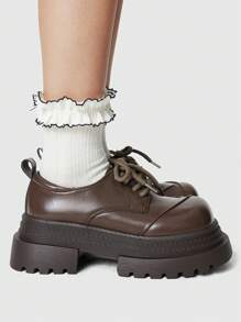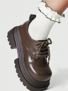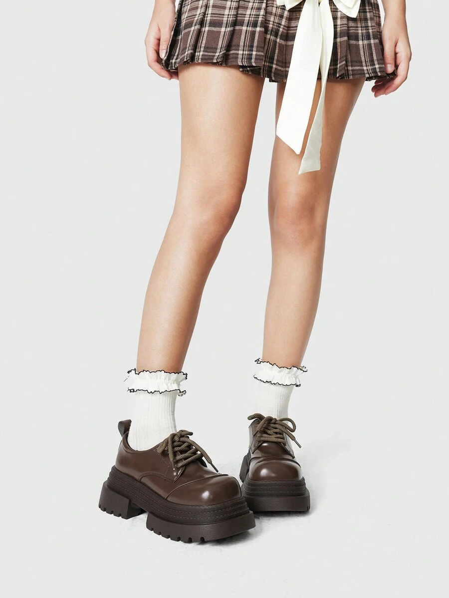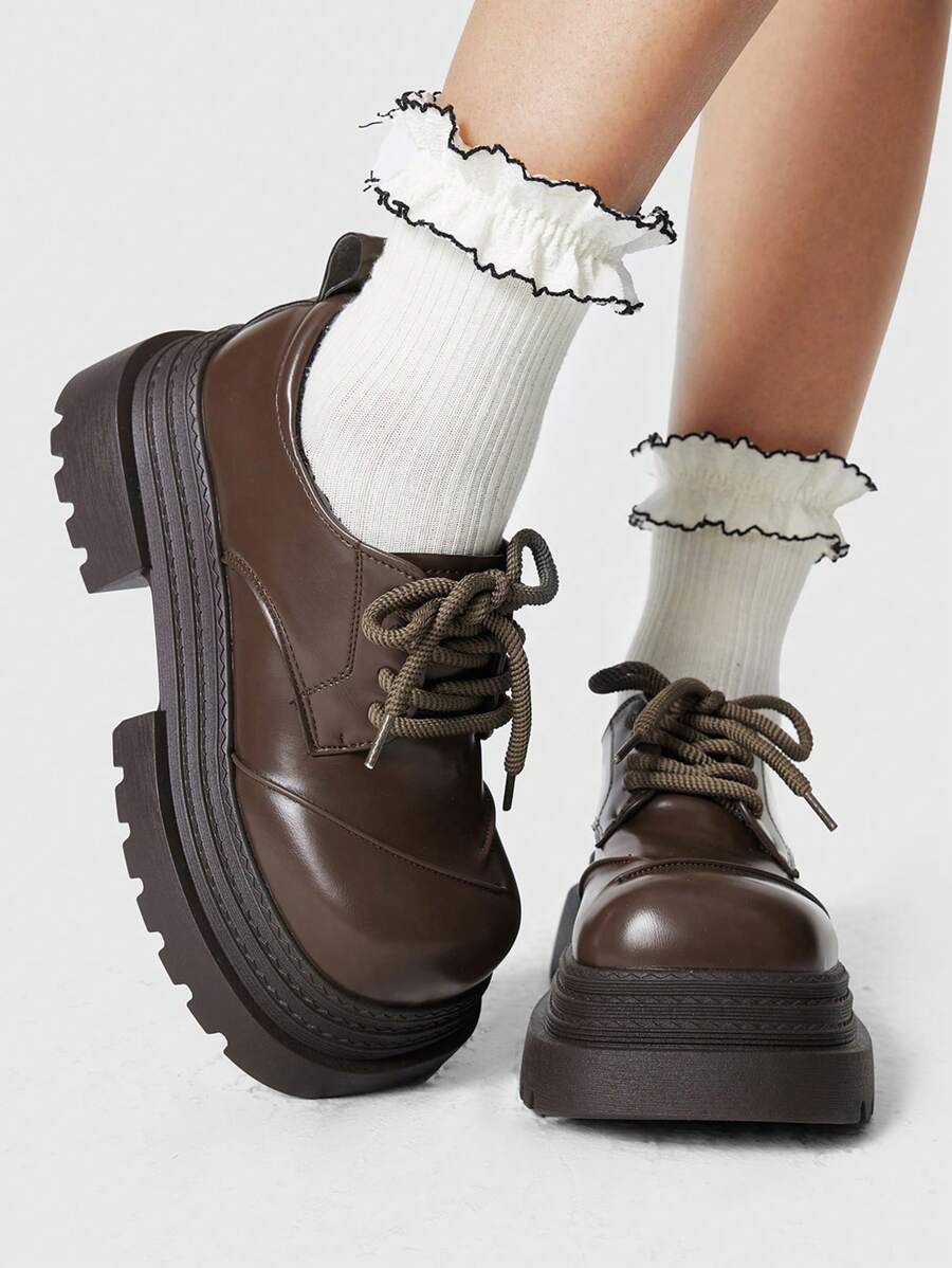 Fairycore Women's Gothic Style Lace-Up Mary Jane Small Leather Shoes, Rockstar Punk Closed Toe Platform & Wedge Loafers