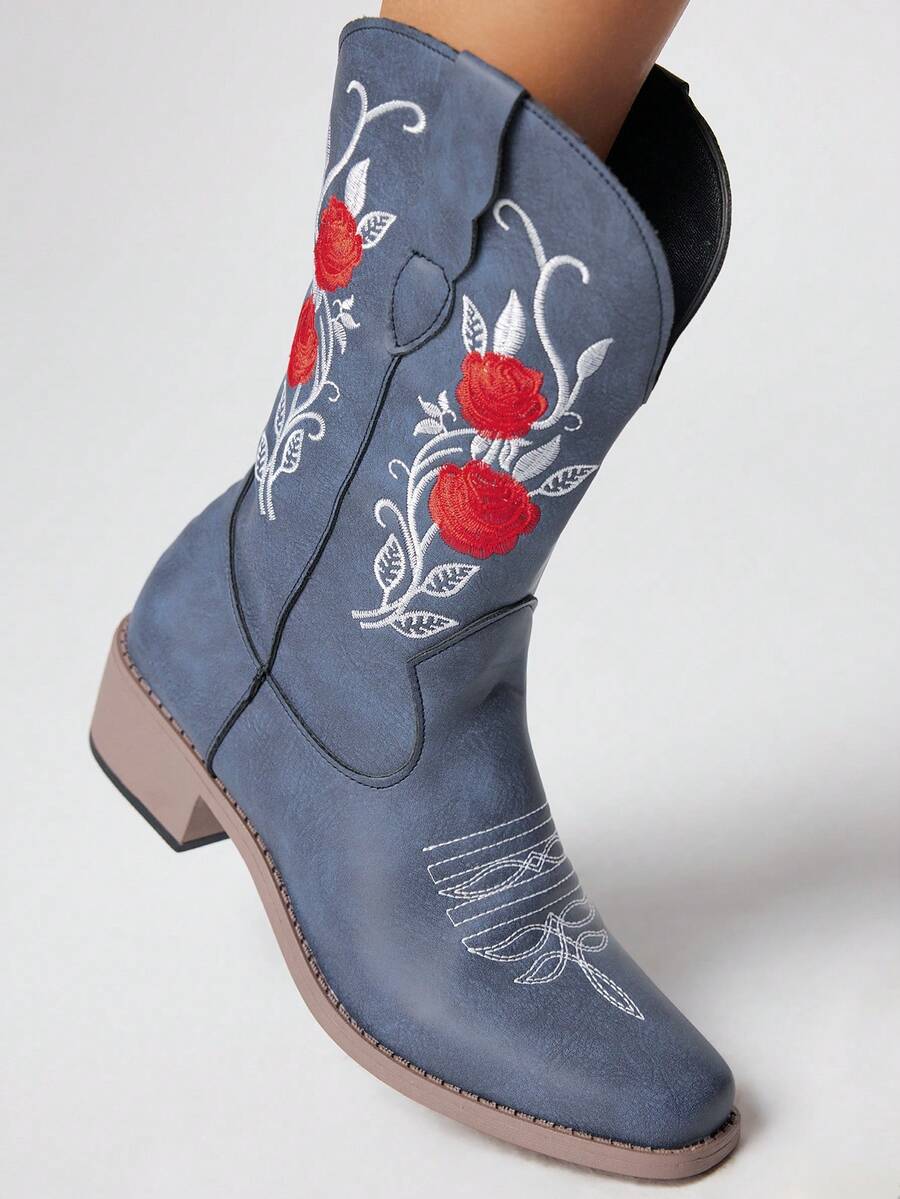 Fairycore Women's New Western Embroidered Pattern Square Toe Cowboy Boots