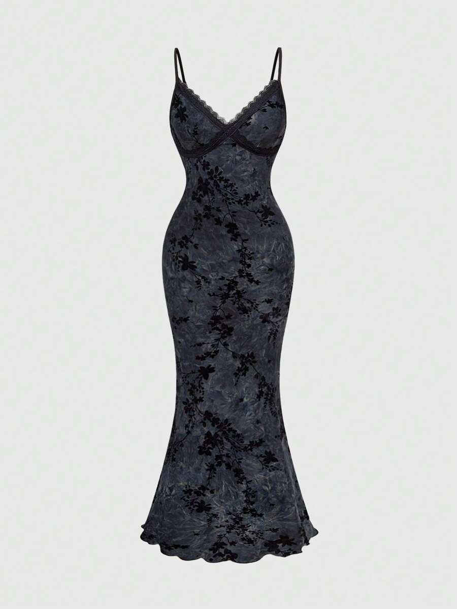 Fairycore Women's Retro Floral Flocked Slip Dress