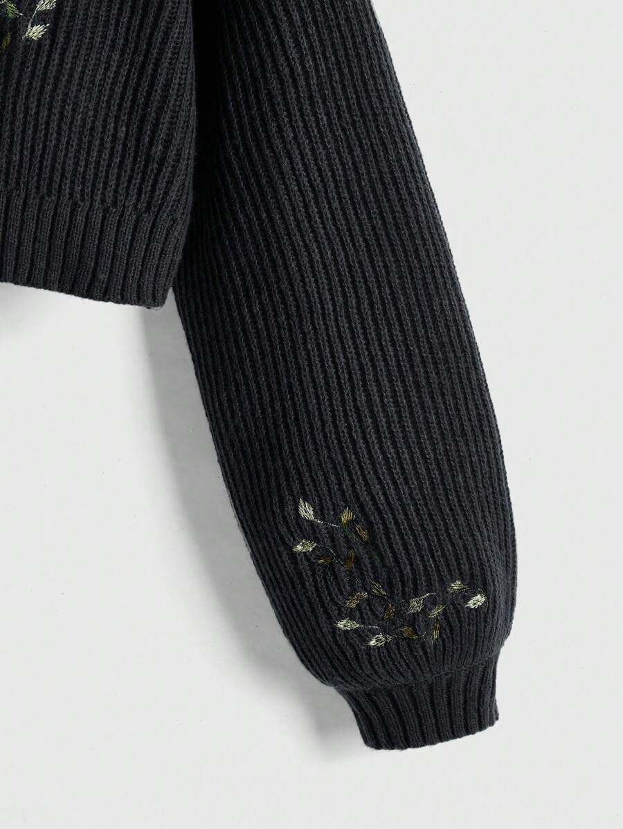 Fairycore Women's Turtleneck Long Sleeve Fox Embroidery Knitted Sweater, Casual Everyday Wear
