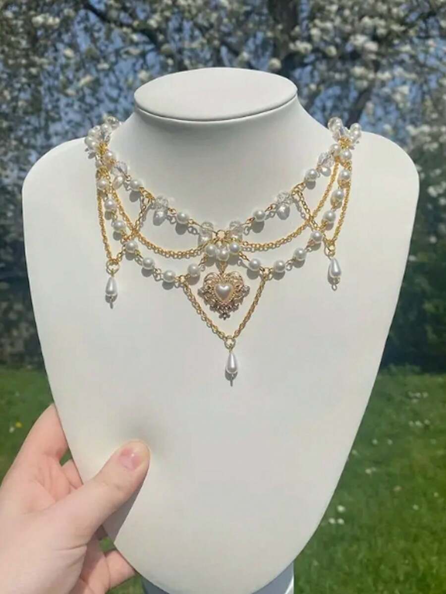 Fairycore Y2k Style Fashionable Faux Pearl Pendant Necklace