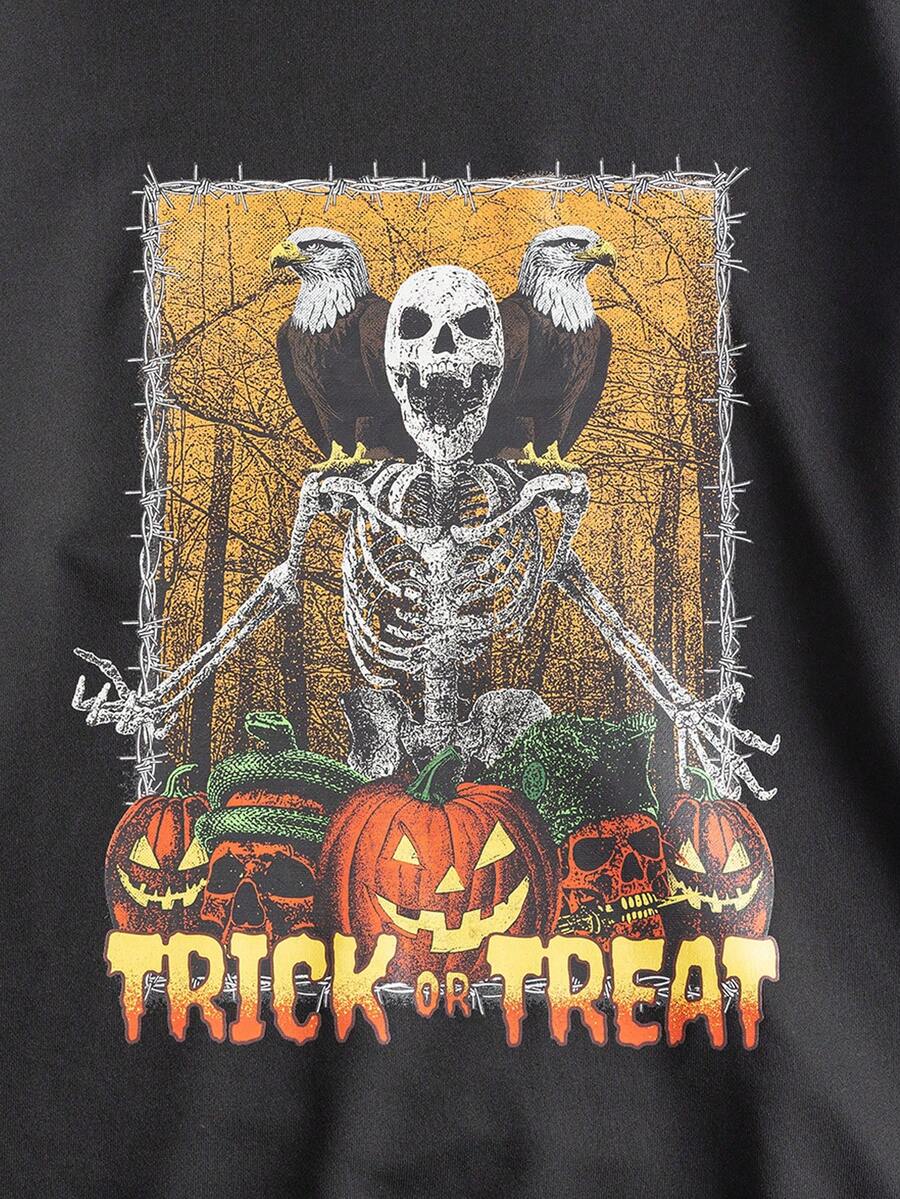 Fakhri Hilmi Guys Skeleton & Letter Graphic Drawstring Hoodie