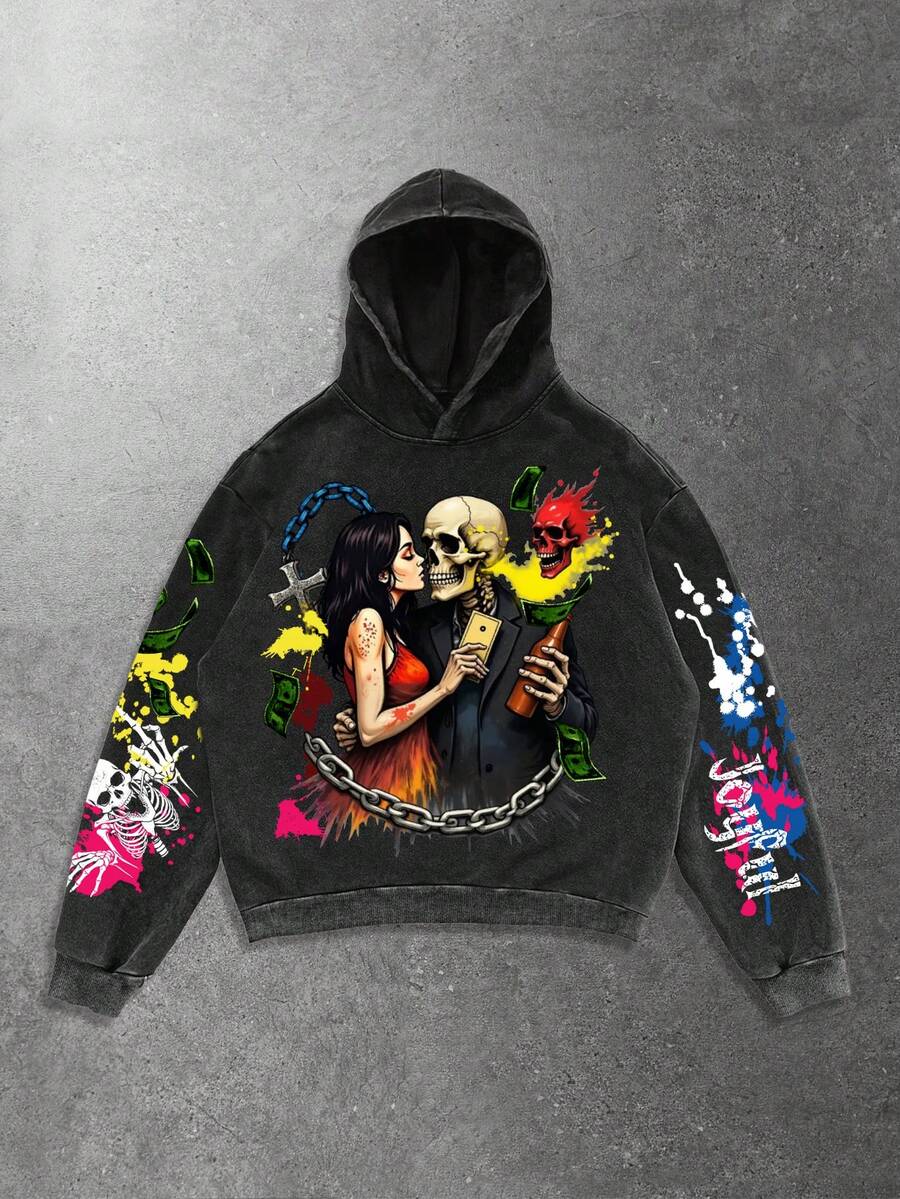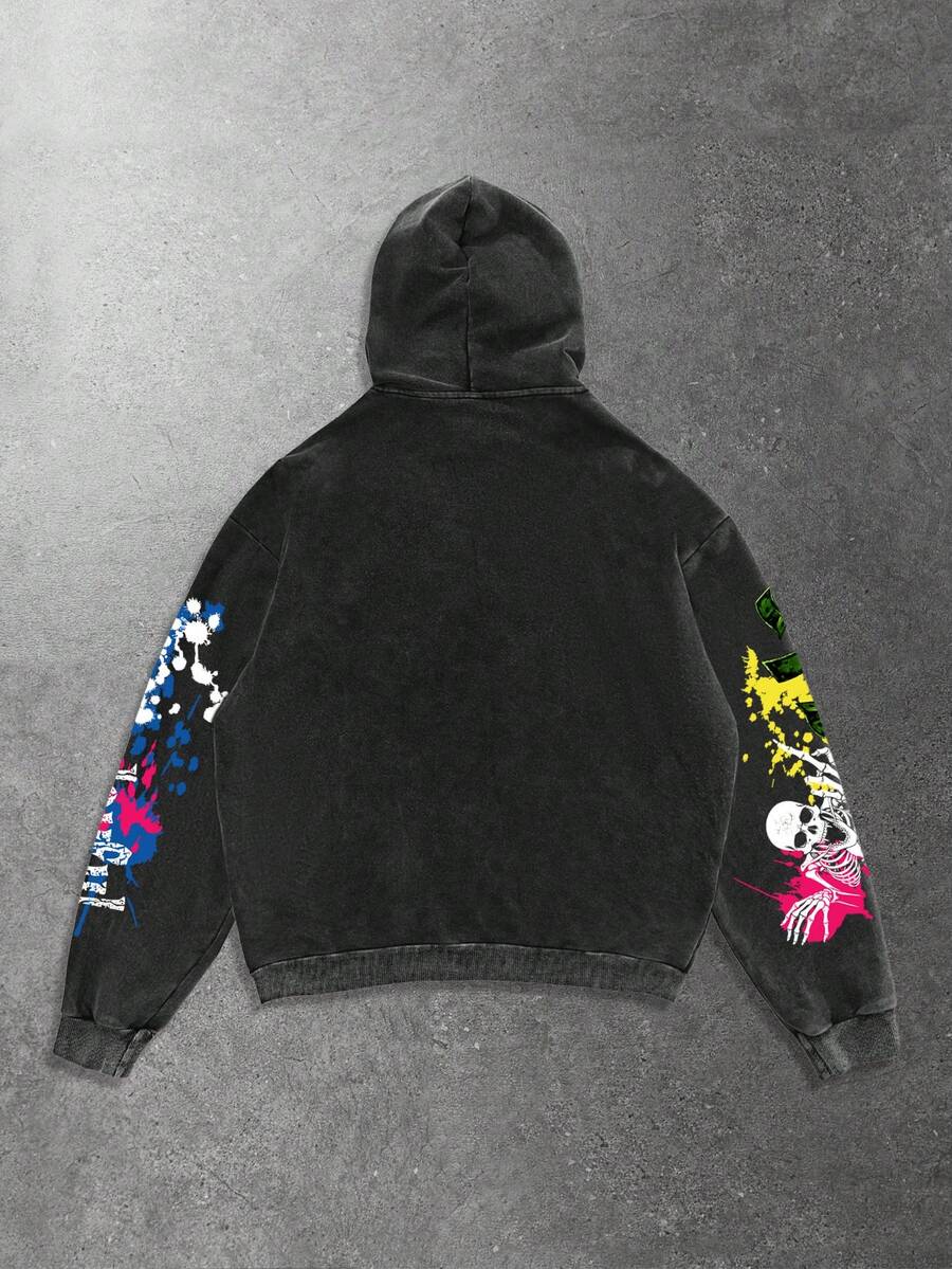 Fashion Black Snowflake Print Men's Hooded Skull Sweatshirt Without Pockets