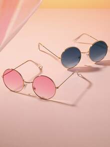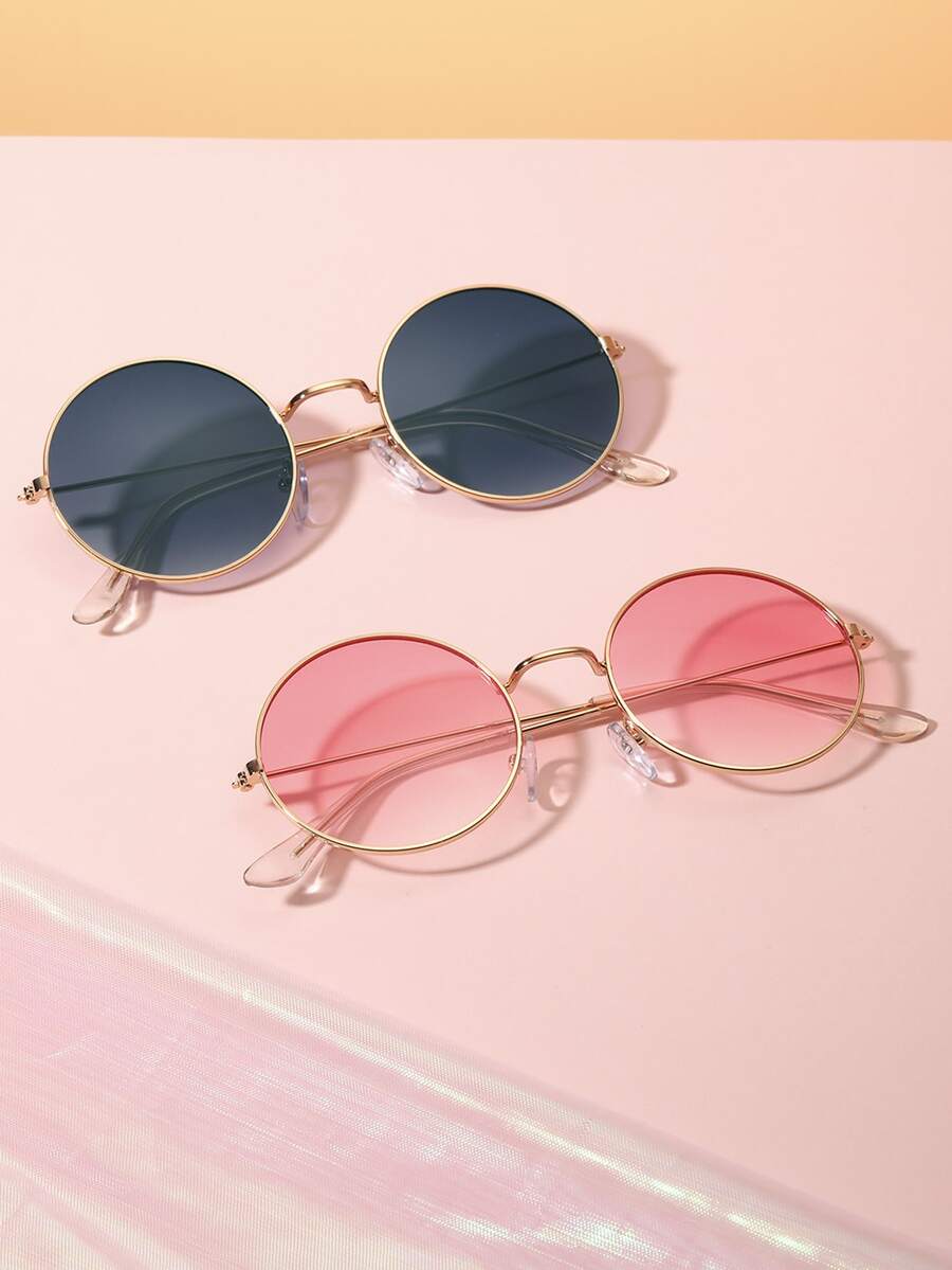 2pairs Women Round Frame Tinted Lens Fashion Glasses