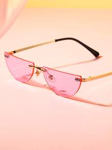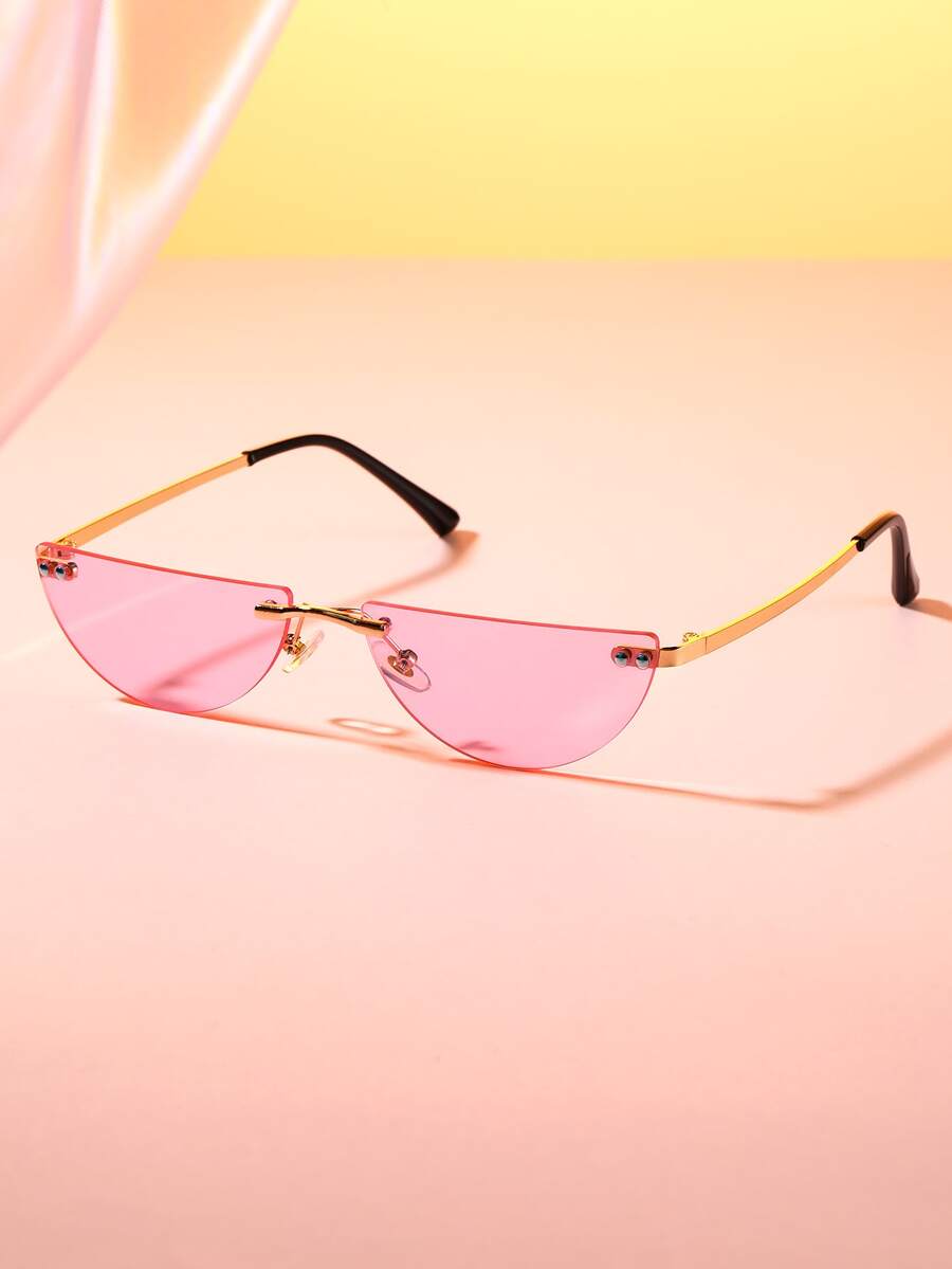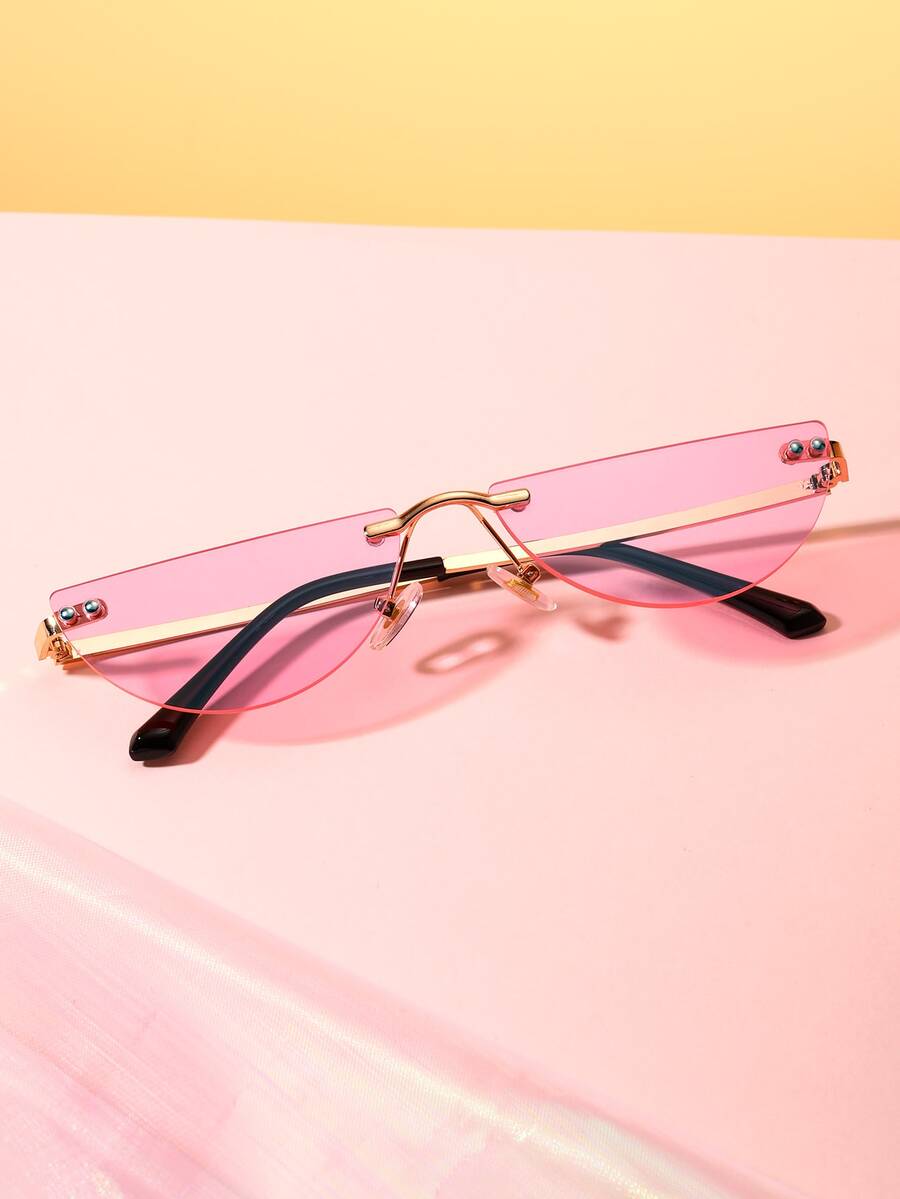 1pair Women Semicircle Rimless Tinted Lens Fashion Glasses