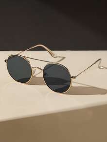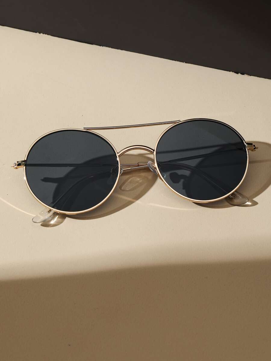 1pair Women Top Bar Metal Round Frame Fashion Glasses For Outdoor