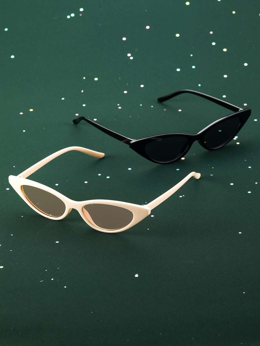 2pairs Women Cat Eye Frame Fashion Glasses For Daily Life
