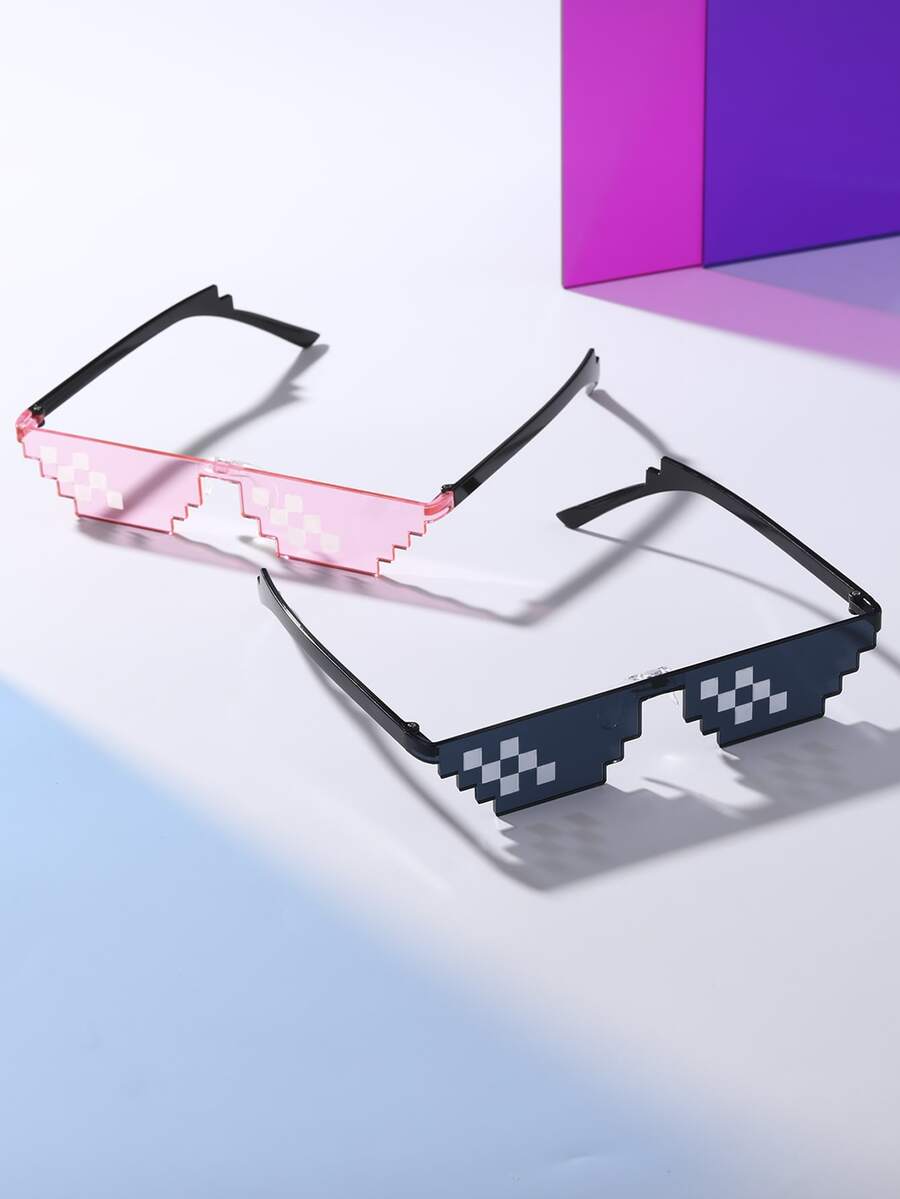 2pairs Women Mosaic Pattern Novelty Rimless Creative Fashion Glasses For Daily Life