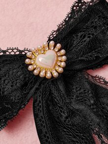Kawaii Faux Pearl & Rhinestone Decor Bow Tie