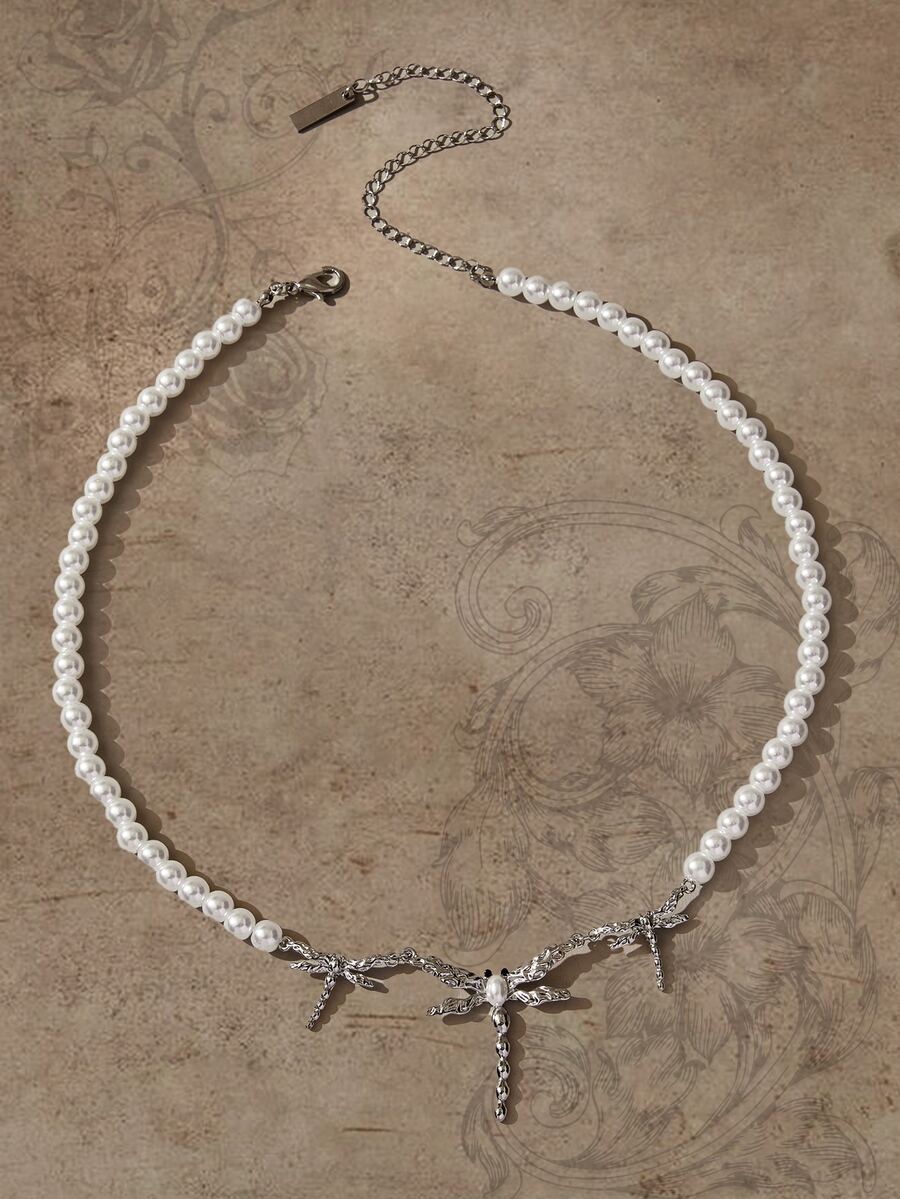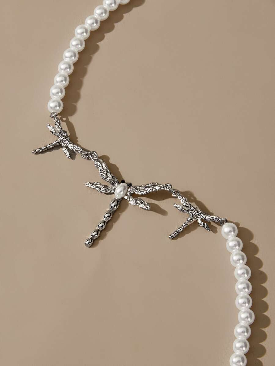 Fairycore Faux Pearl Decor Dragonfly Pendant Necklace