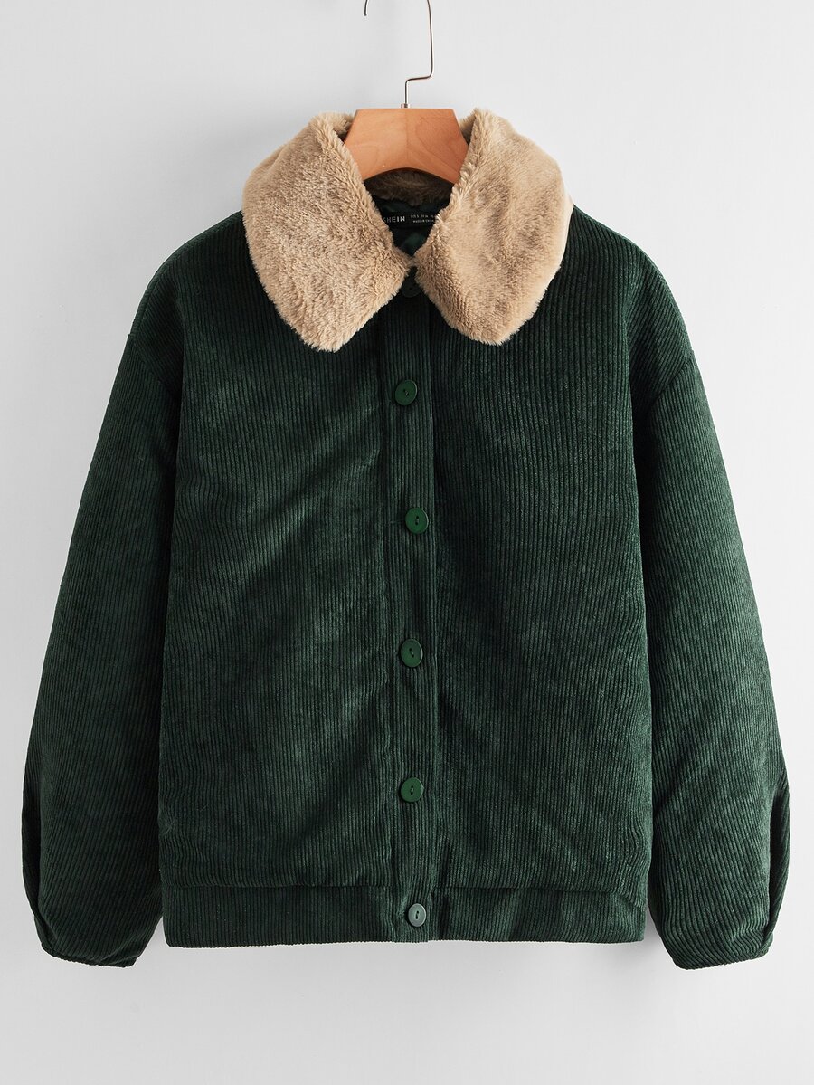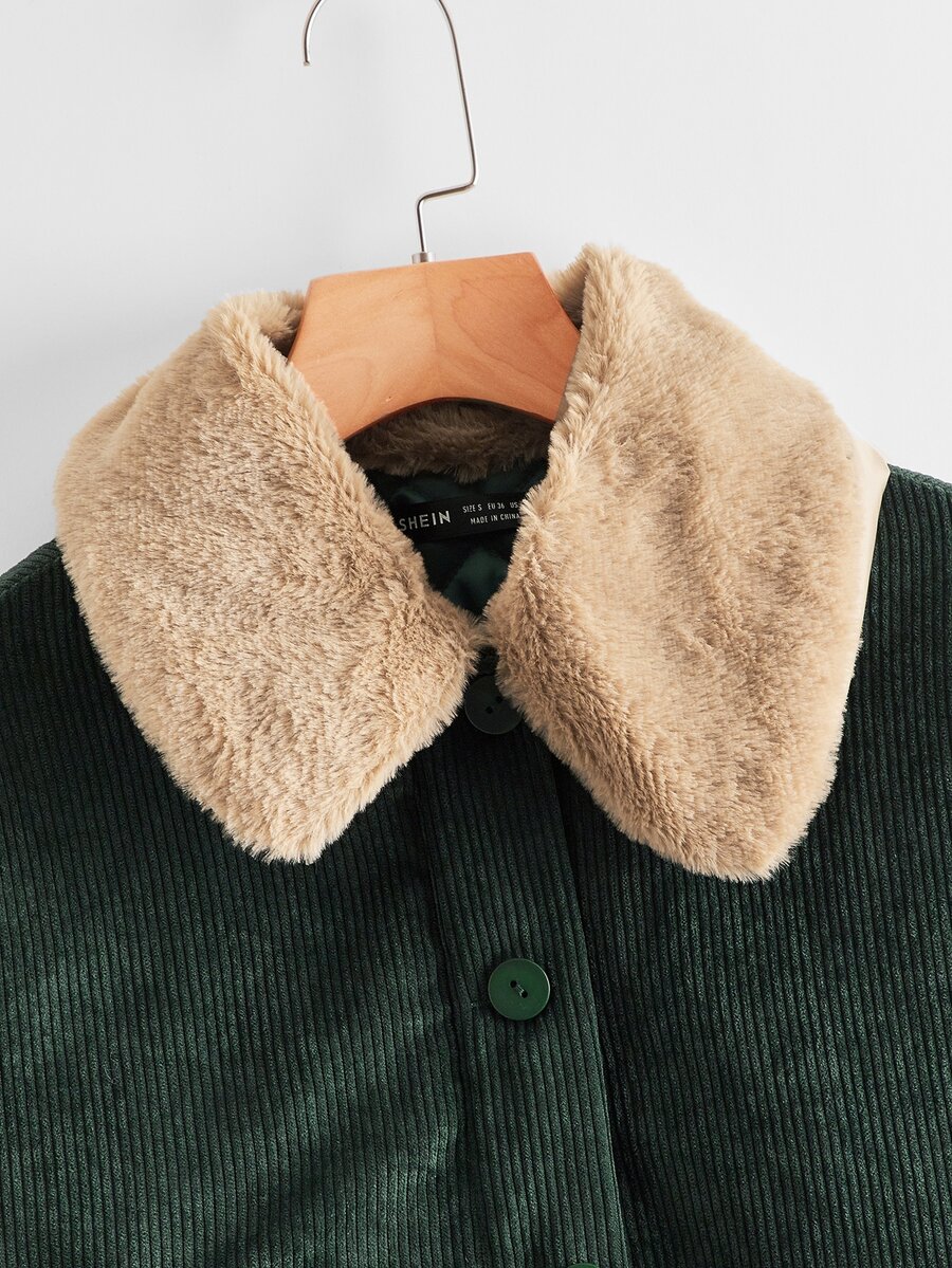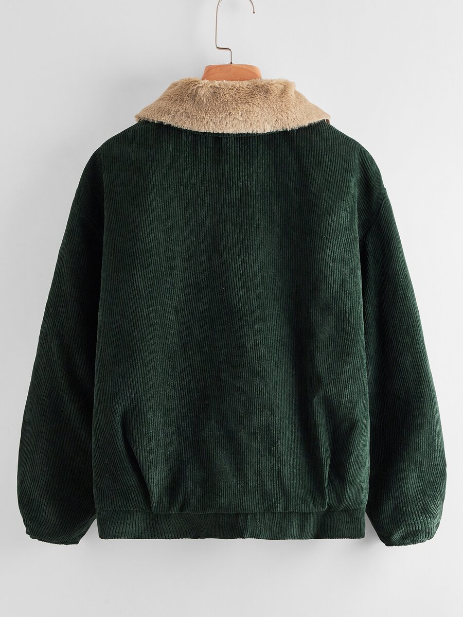 Faux Shearling Trim Drop Shoulder Cord Jacket