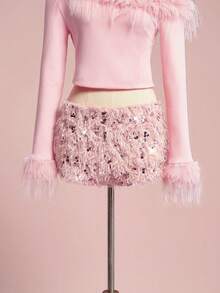 ROMWE Avant Feather, Sequin, Glitter Embellished Sexy Ultra-Low Waist Mini Shorts For Women, Suitable For Party, Festival