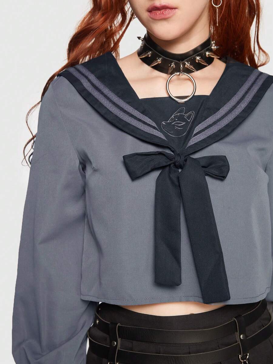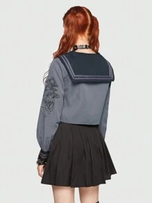 J-Fashion Figure Graphic Crop Blouse & Pleated Skirt