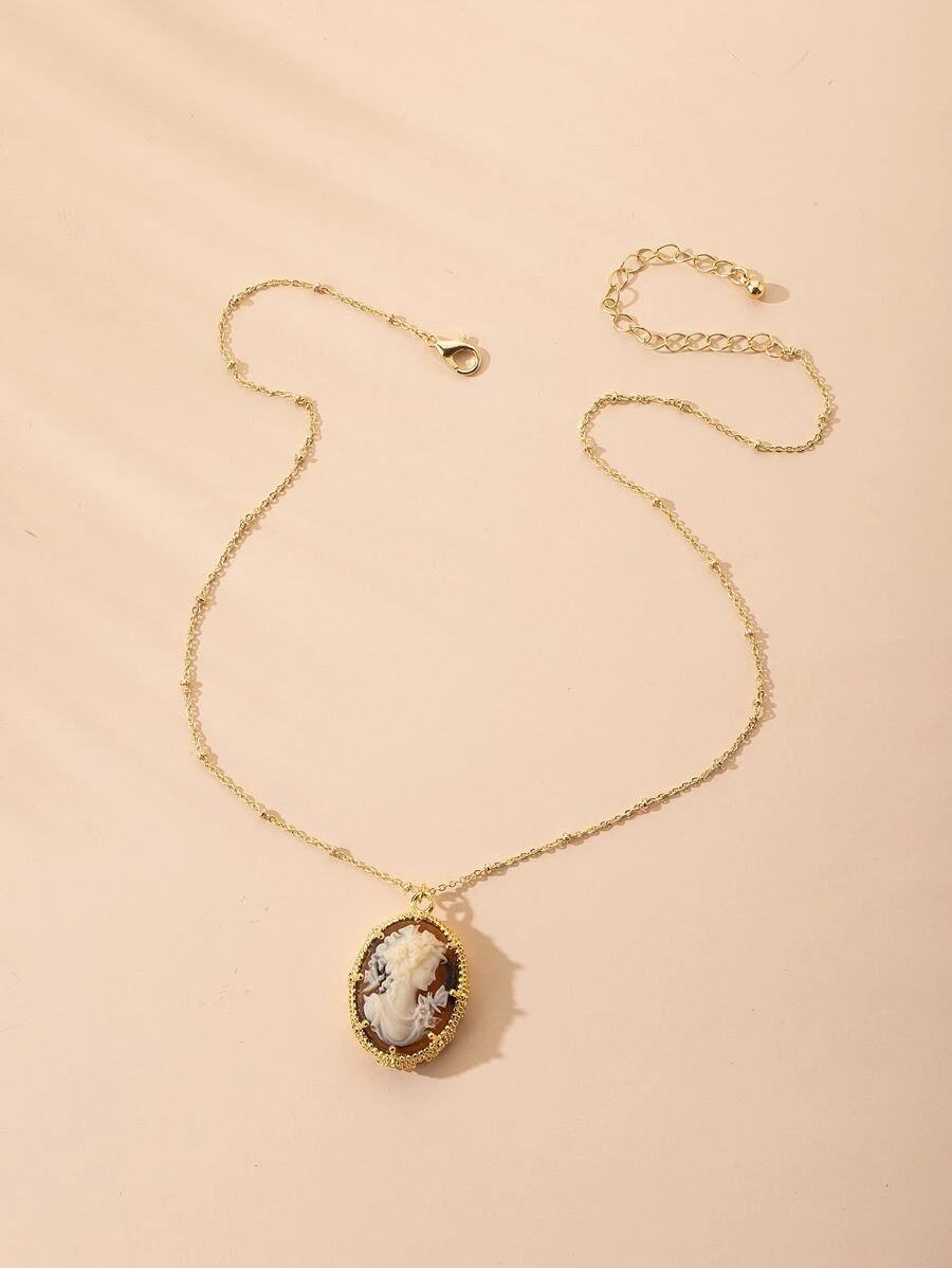 Figure Oval Pendant Necklace