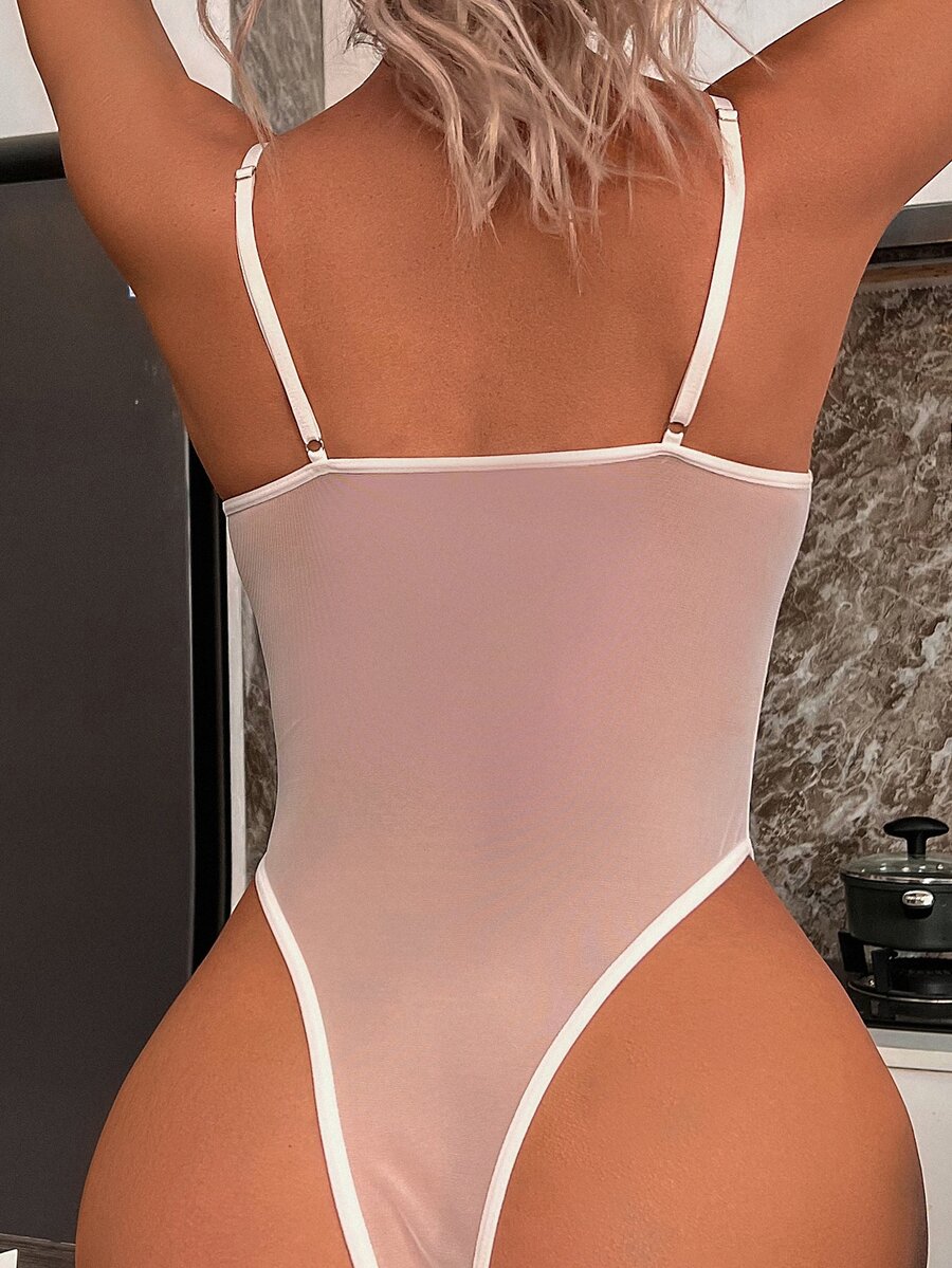 Floral Embroidery Underwire Mesh Teddy Bodysuit