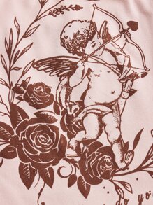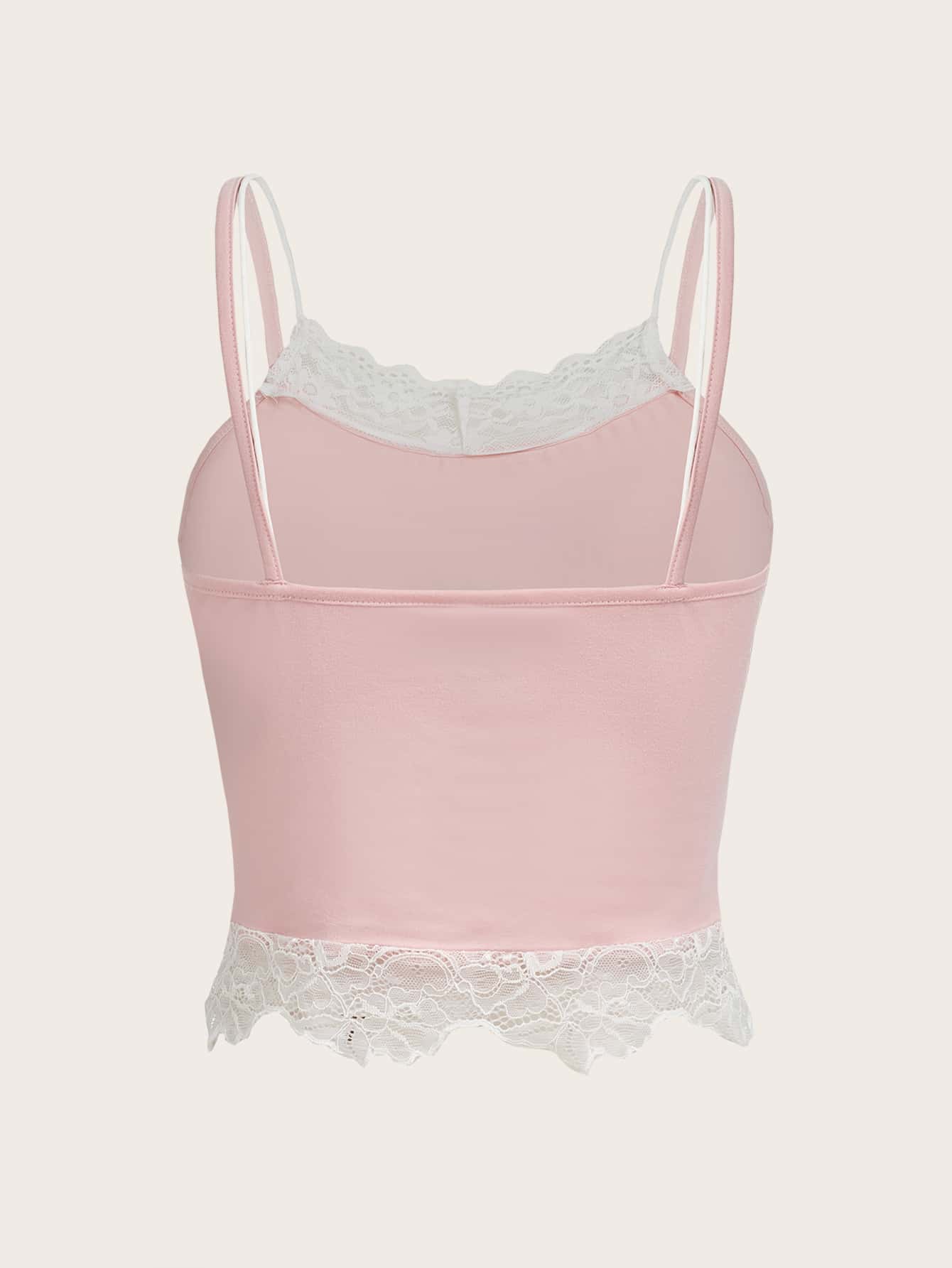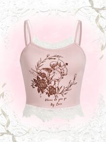 Floral & Figure Graphic Contrast Lace Cami Top