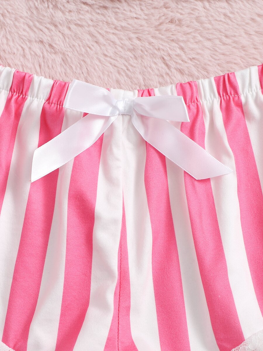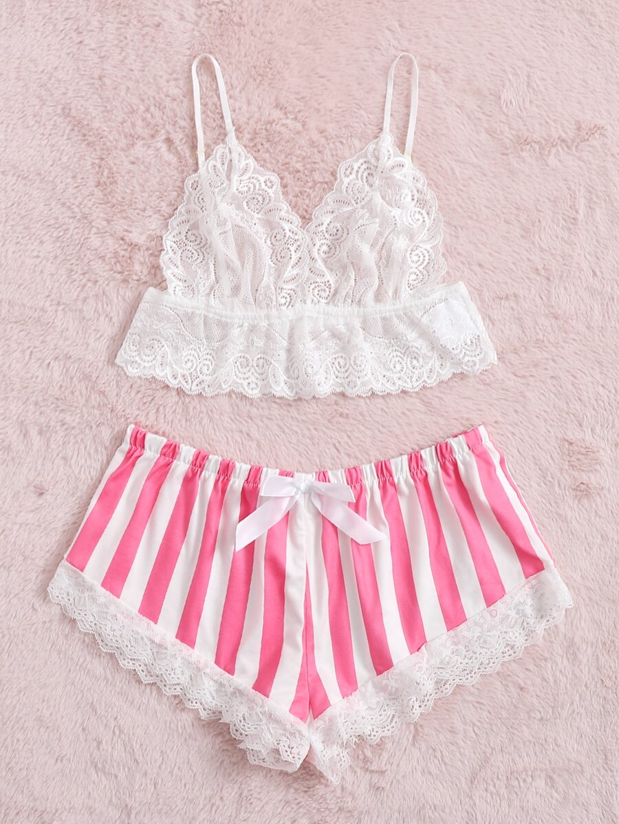 Floral Lace Bra With Striped Satin Shorts, Lingerie