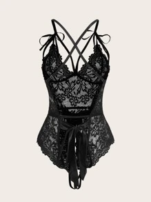 Floral Lace Criss Cross Cut Out Teddy Bodysuit