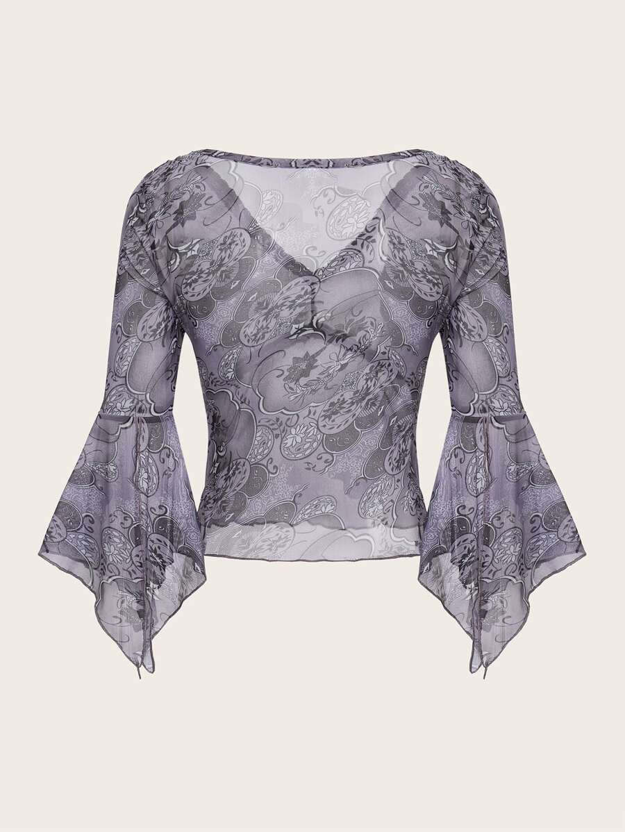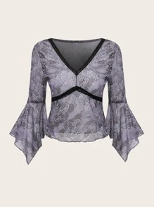 Floral Lace Flounce Sleeve Top