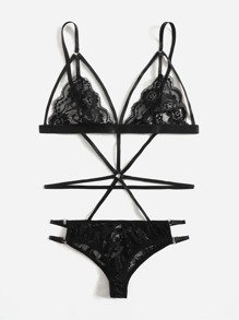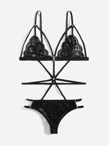 Floral Lace Harness Teddy Bodysuit