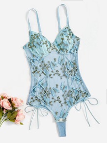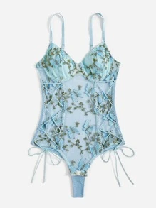 Floral Lace Up Cami Schiffy Bodysuit