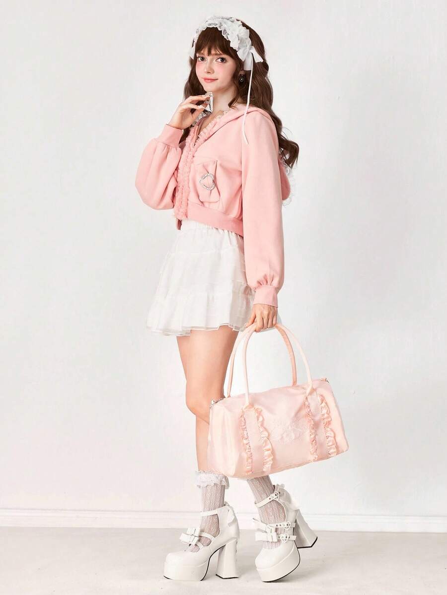 Kawaii Floral Pattern: 336027 Rabbit Bow Short Trip Bag Women's Business Travel Tote Handbag Messenger Bag 2-In-1 Large Capacity Lightweight Gym Sports Duffel Bag