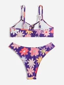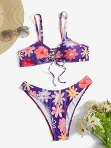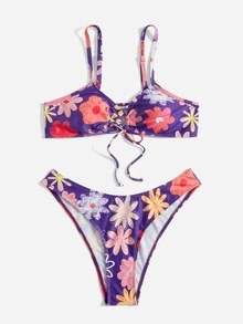 Floral Print Drawstring Bikini