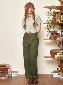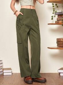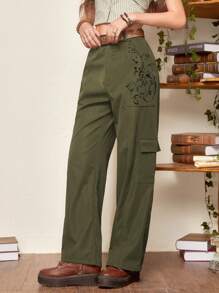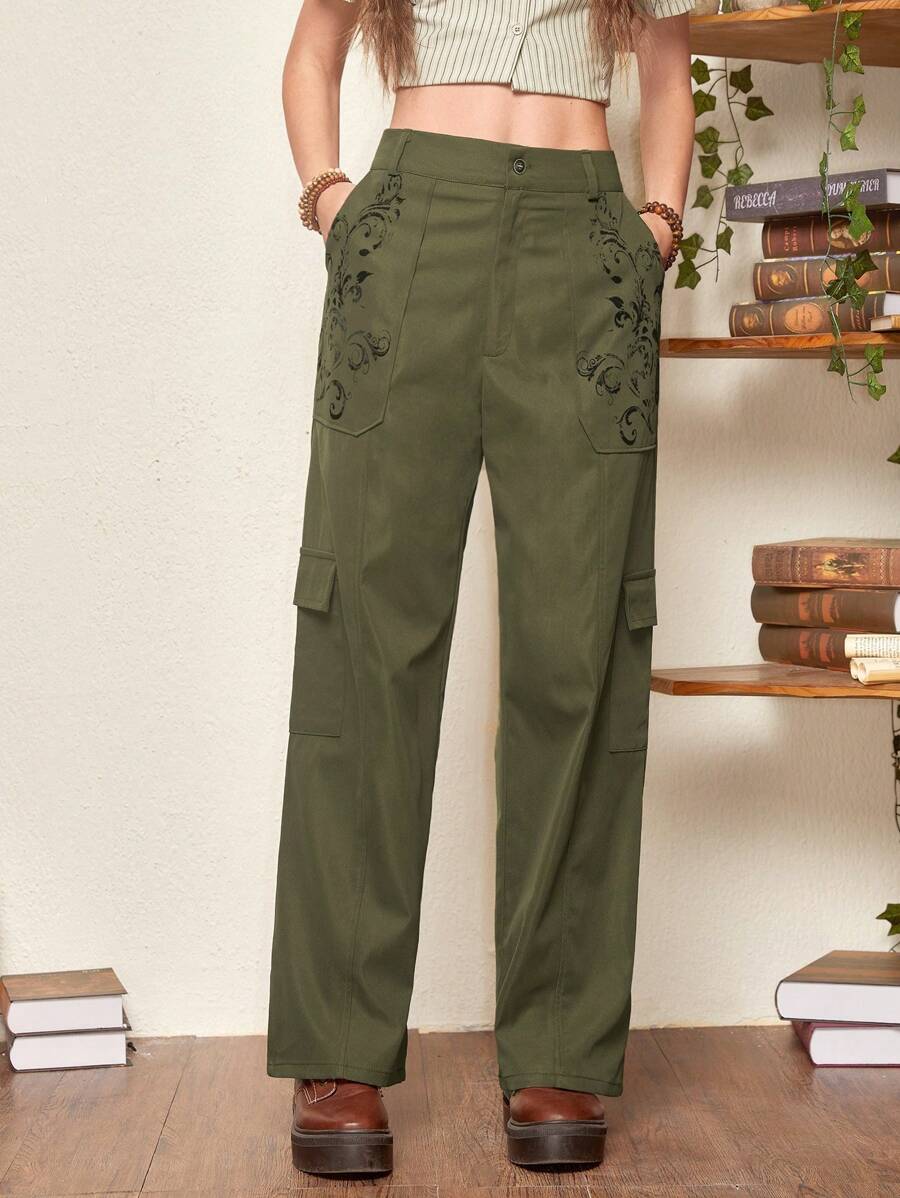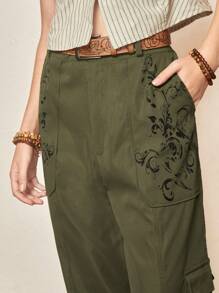 Fairycore Floral Print Flap Pocket Side Cargo Pants
