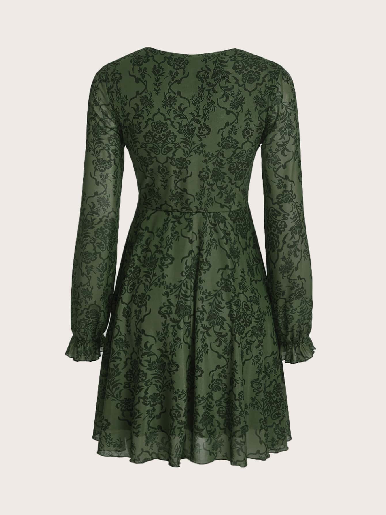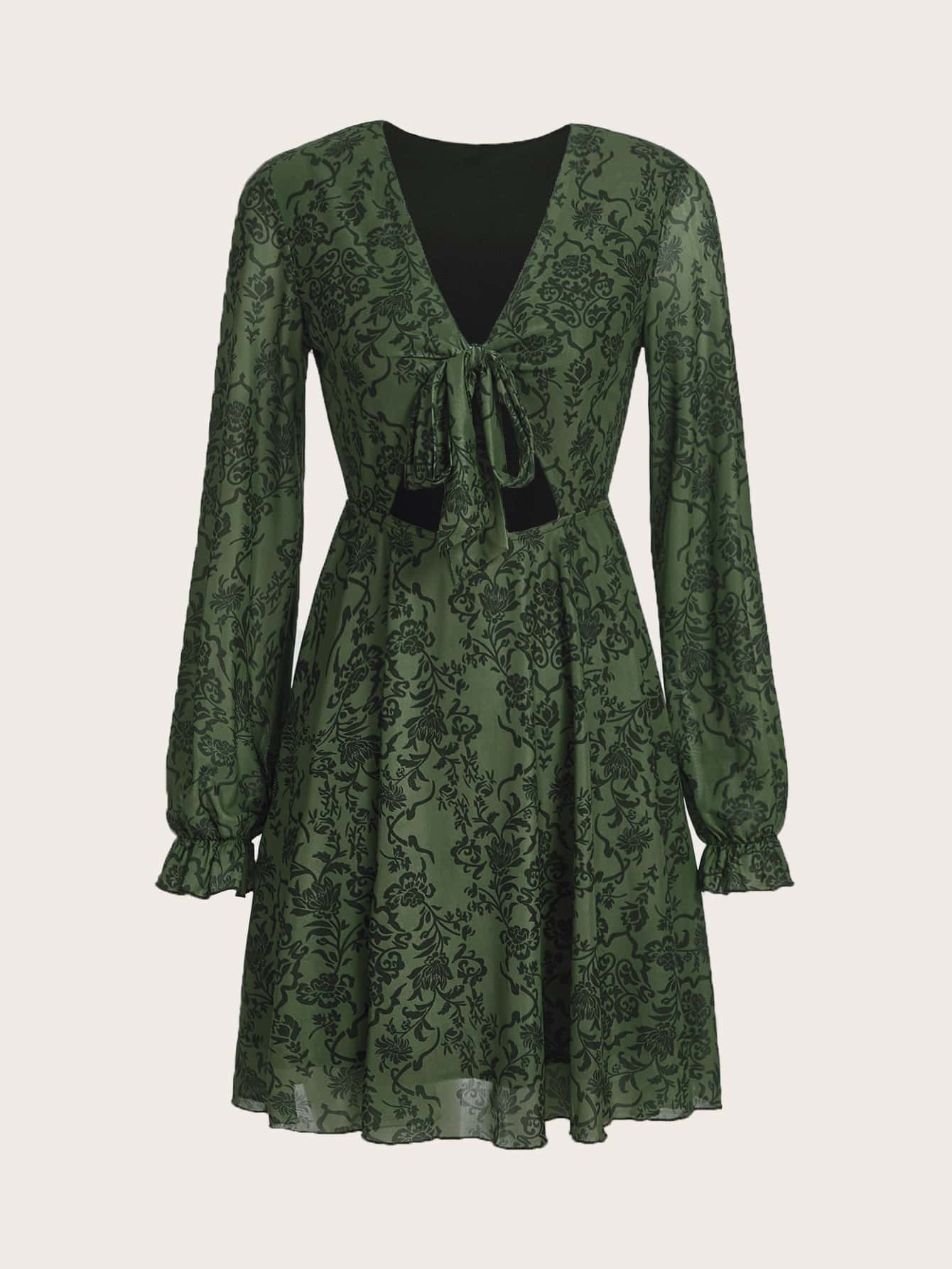 Fairycore Floral Print Knot Front Flounce Sleeve Dress