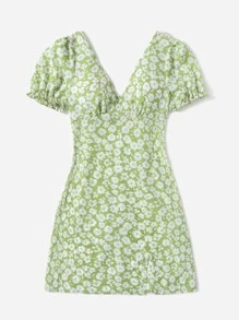 Floral Print Puff Sleeve Dress