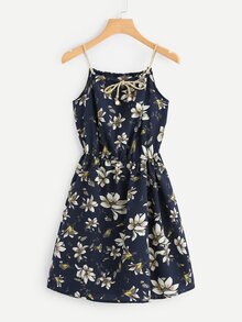 Floral Print Random Self Tie Cami Dress