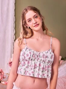 Floral Print Ruched Bust Ruffle Hem Bikini Top