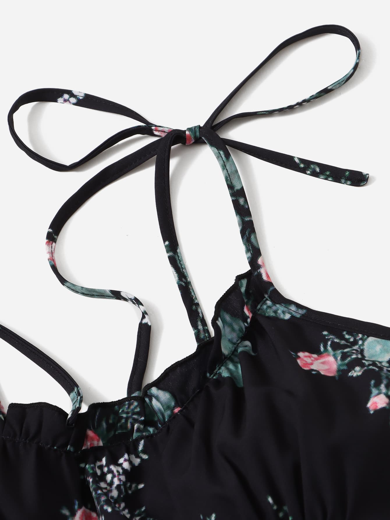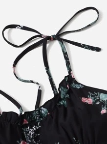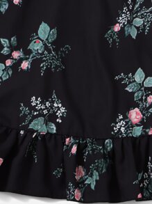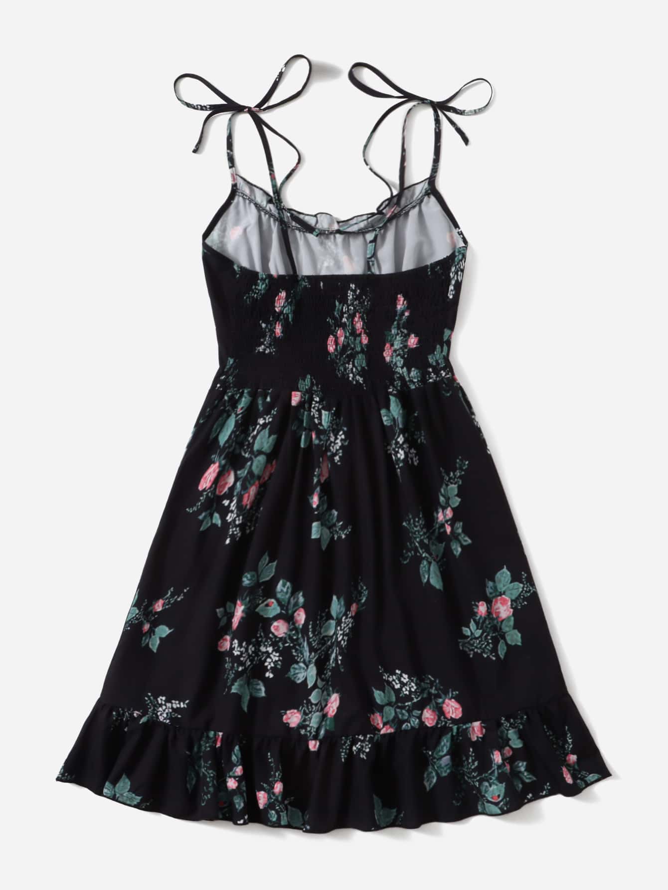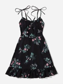 Floral Print Tie Shoulder Ruffle Hem Dress