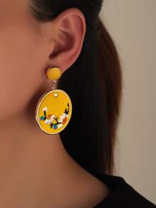 Flower Embroidery Round Drop Earrings