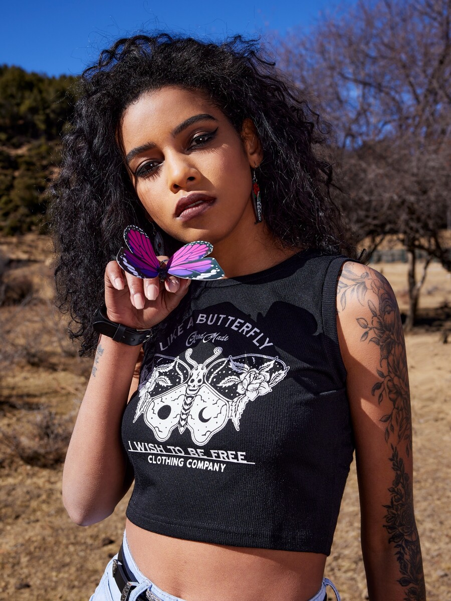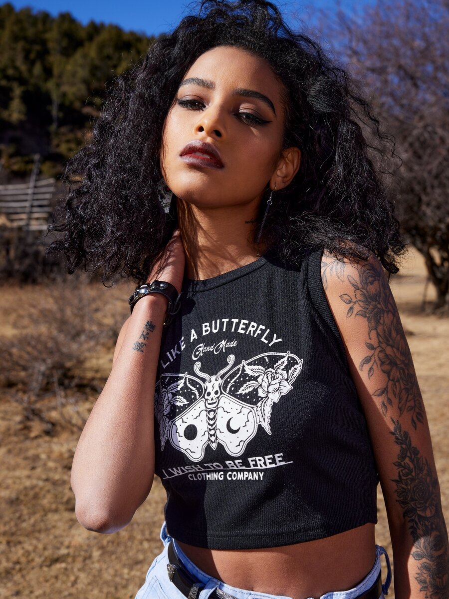 Folluther Goth Letter Skull & Floral Graphic Ribbed Tank Top