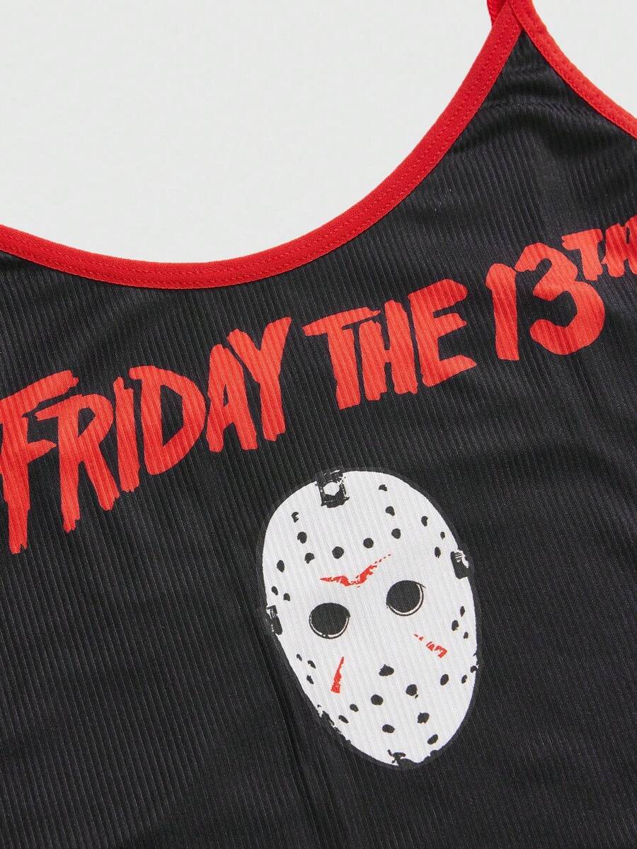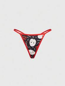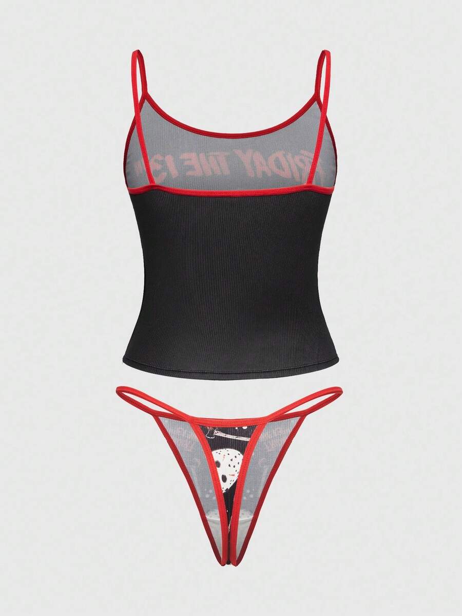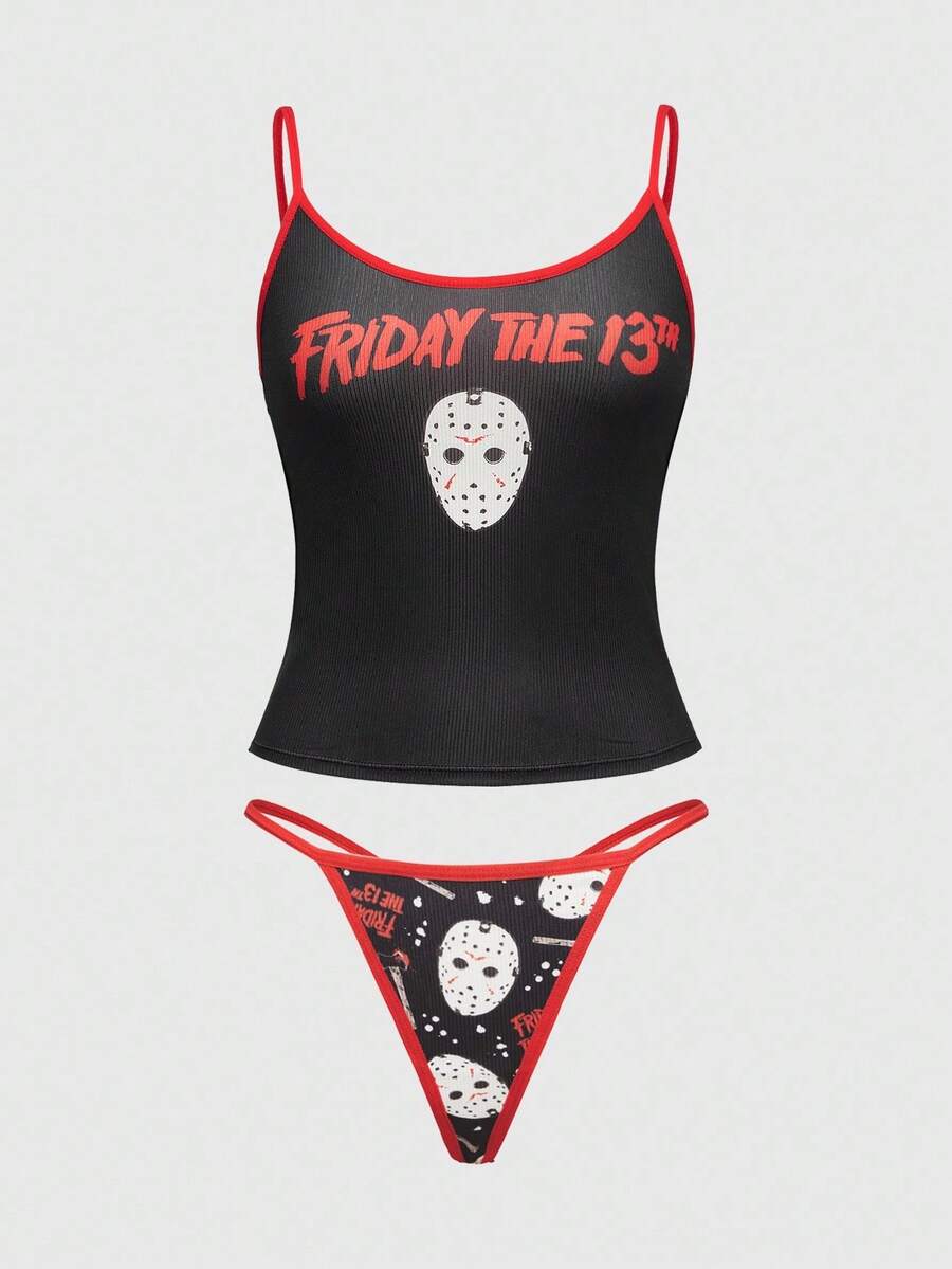 Friday the 13th X ROMWE Mask & Letter Graphic Wireless Bra & Panty Set For Women
