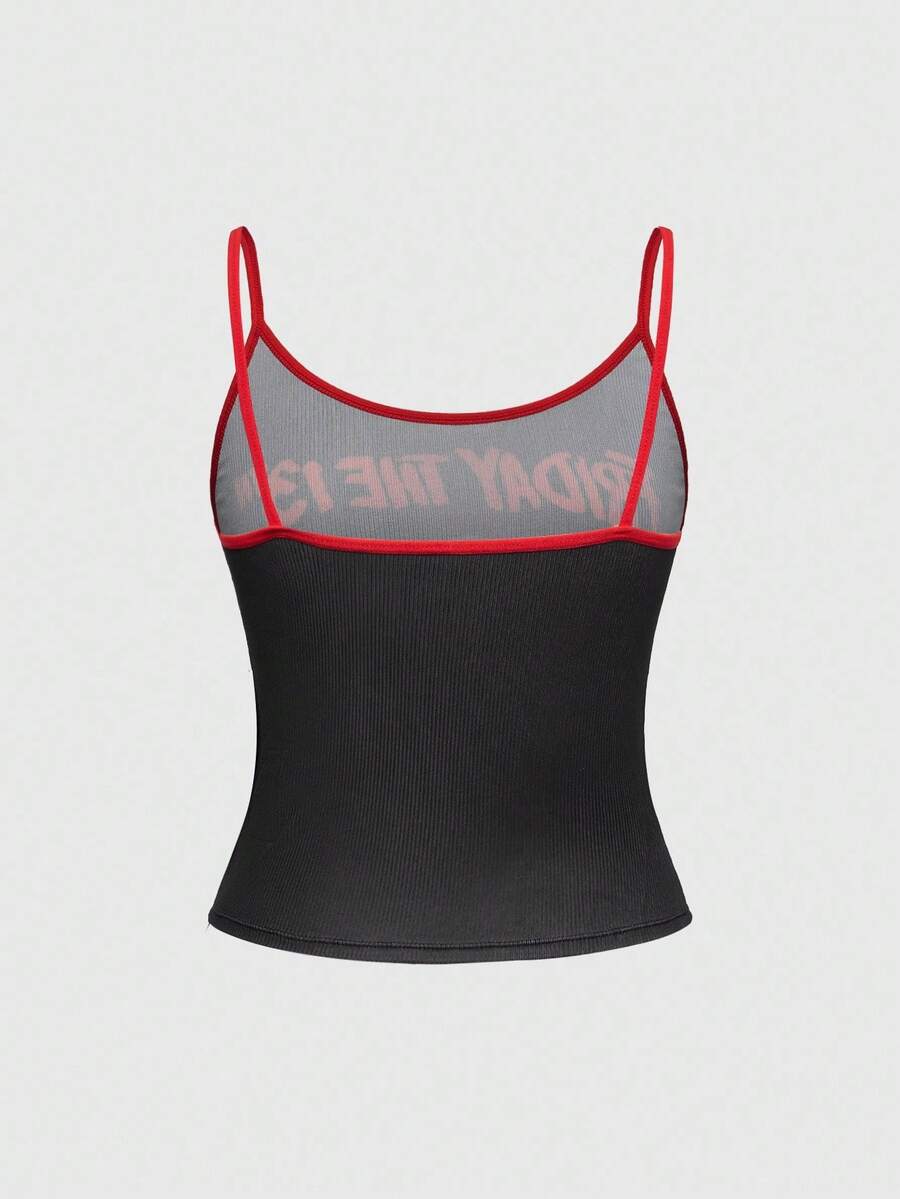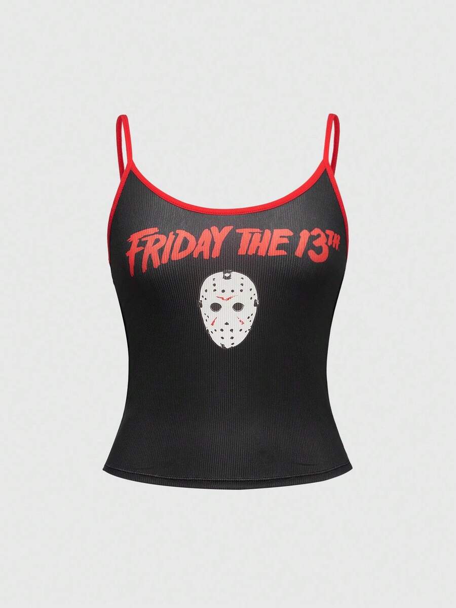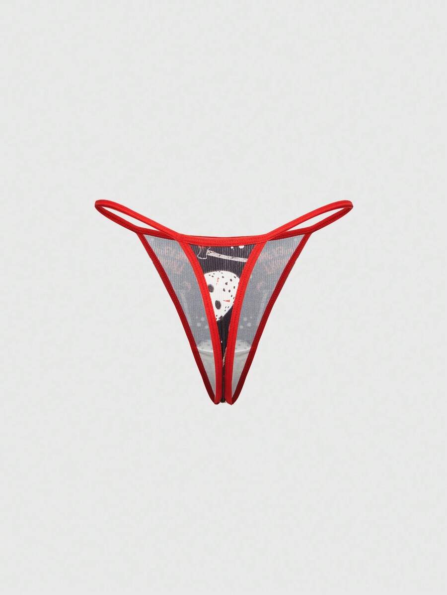 Friday the 13th X ROMWE Mask & Letter Graphic Wireless Bra & Panty Set For Women