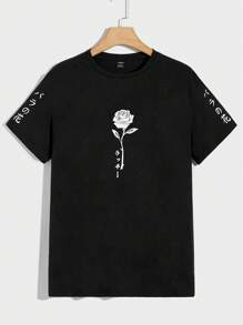GENTILAND Guys Floral & Japanese Letter Graphic Tee