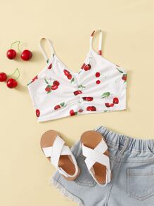 Girls Cherry Print Ruched Detail Crop Cami Top