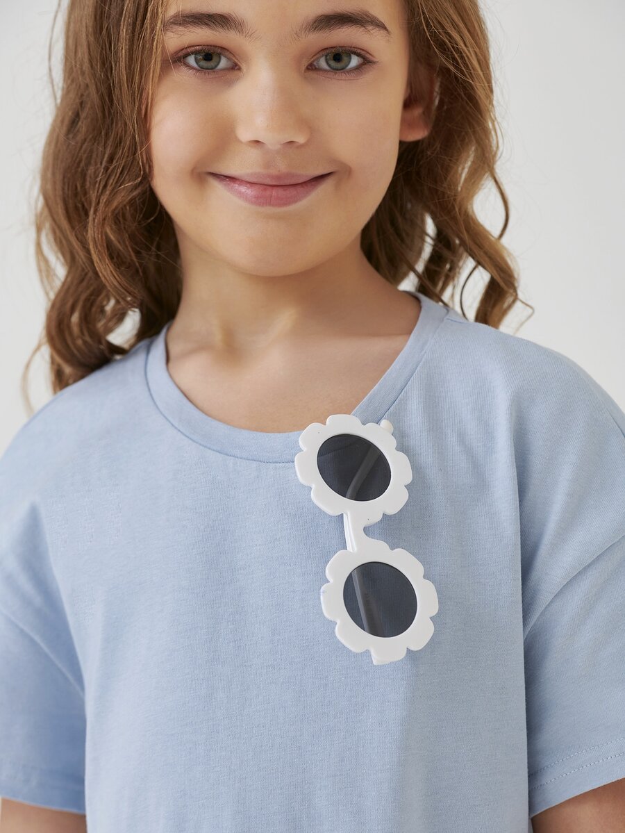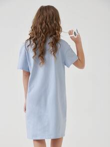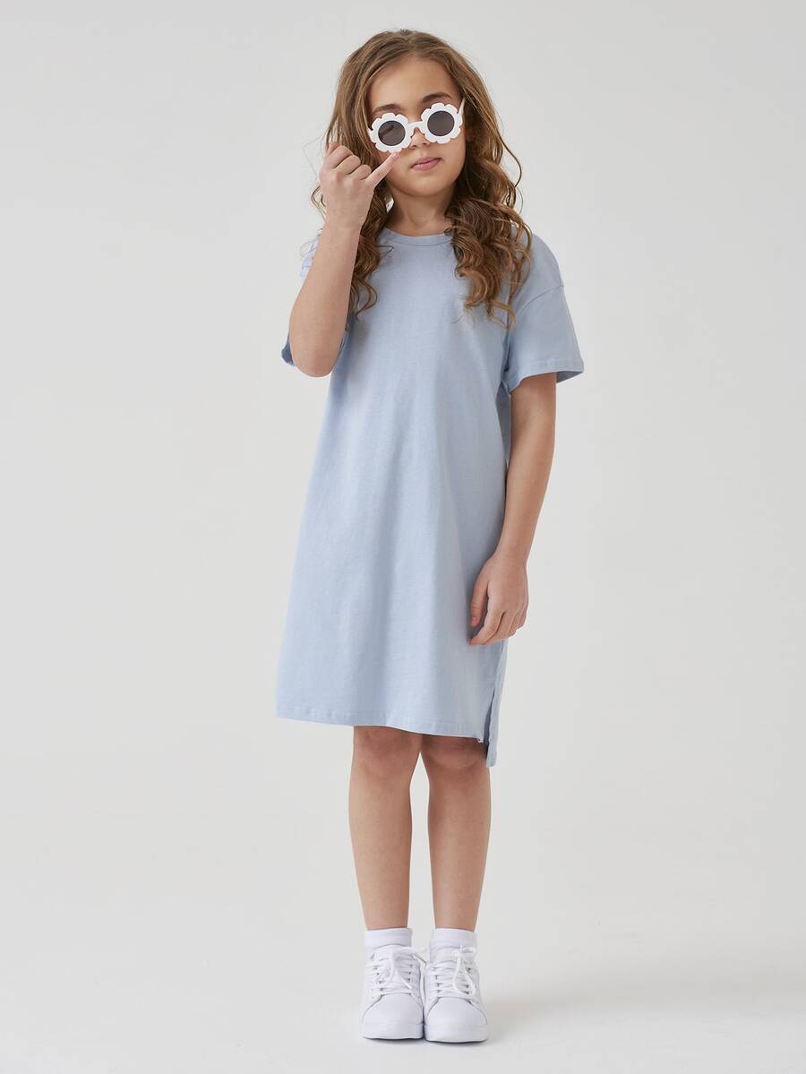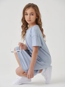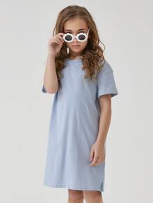 Girls Cotton Drop Shoulder Slit Hem Tee Dress