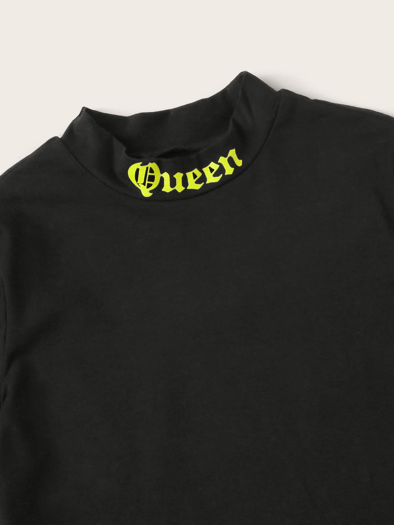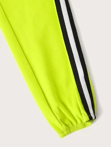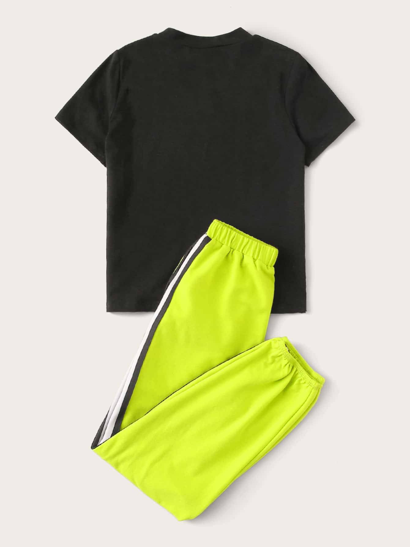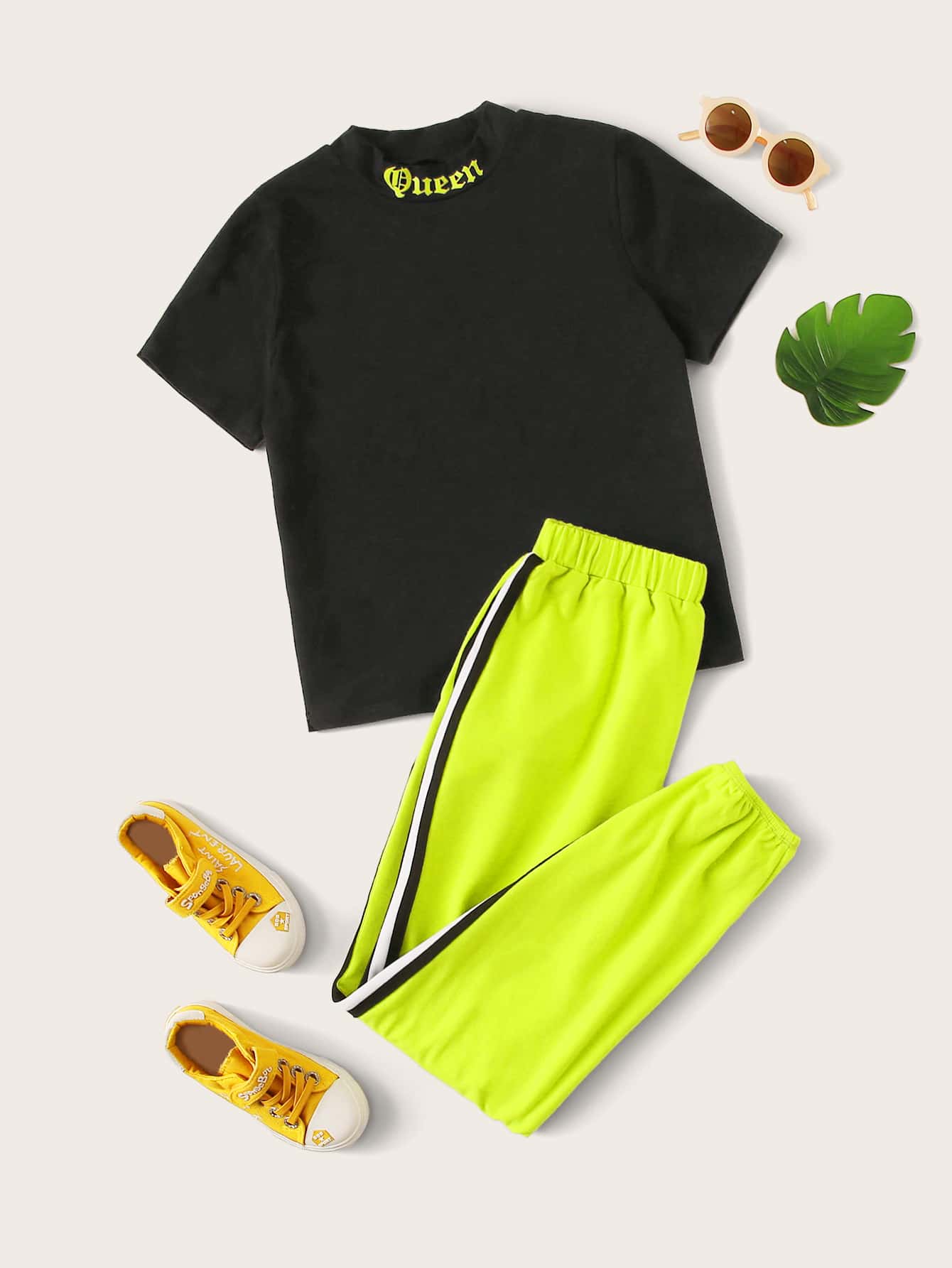 Girls Letter Graphic Tee & Neon Lime Striped Side Joggers Set