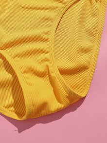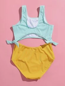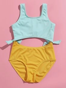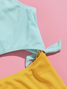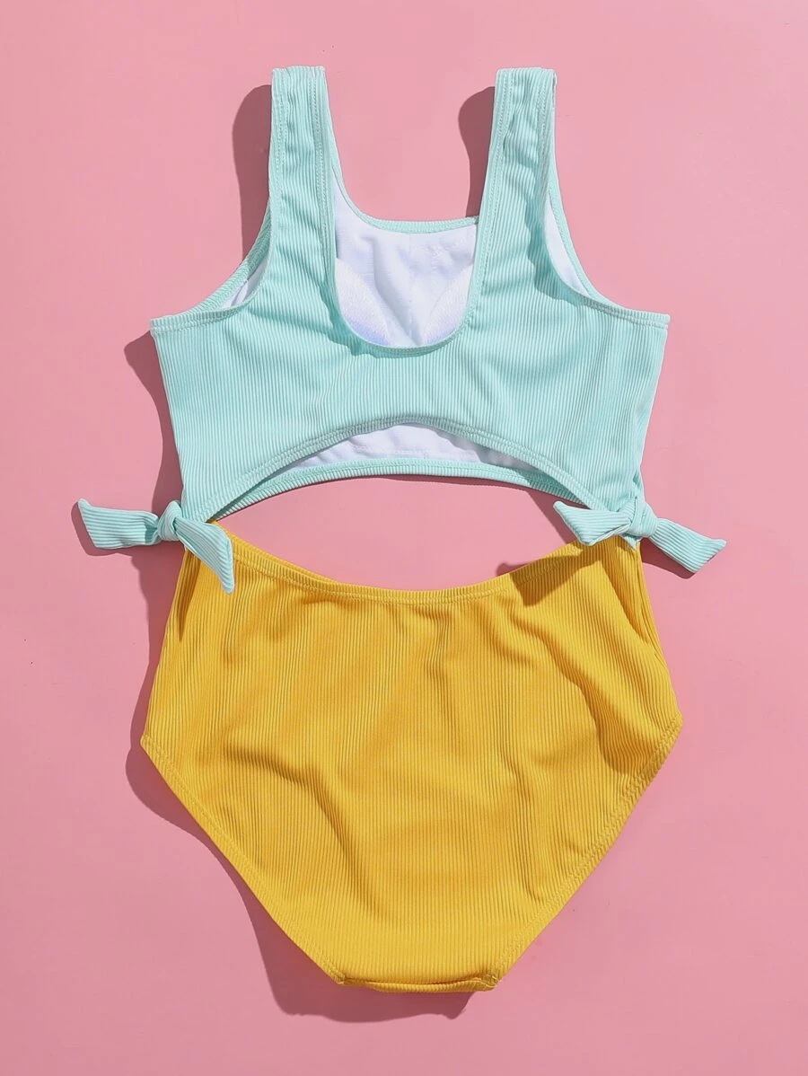 Girls Two Tone Rib Cut-out One Piece Swimsuit