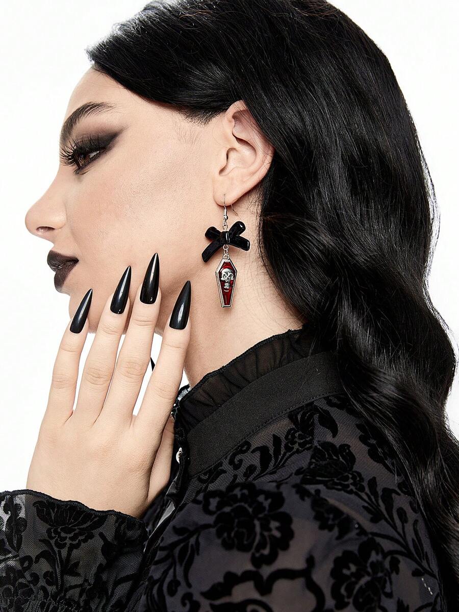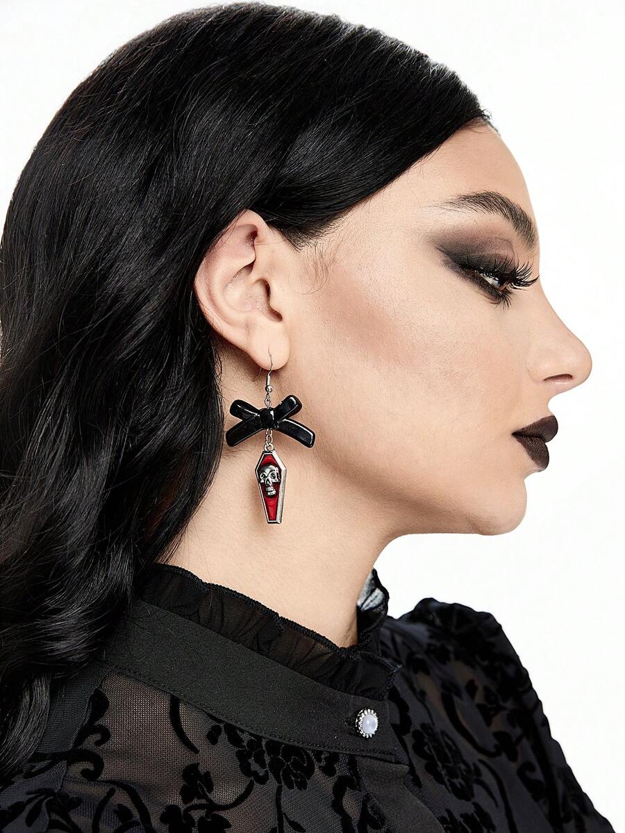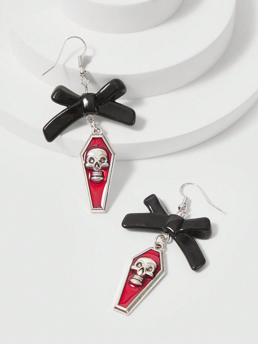 1 Pair Gothic Bowknot Skull Earrings For Women