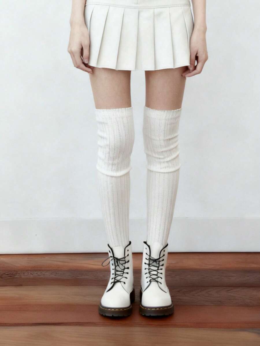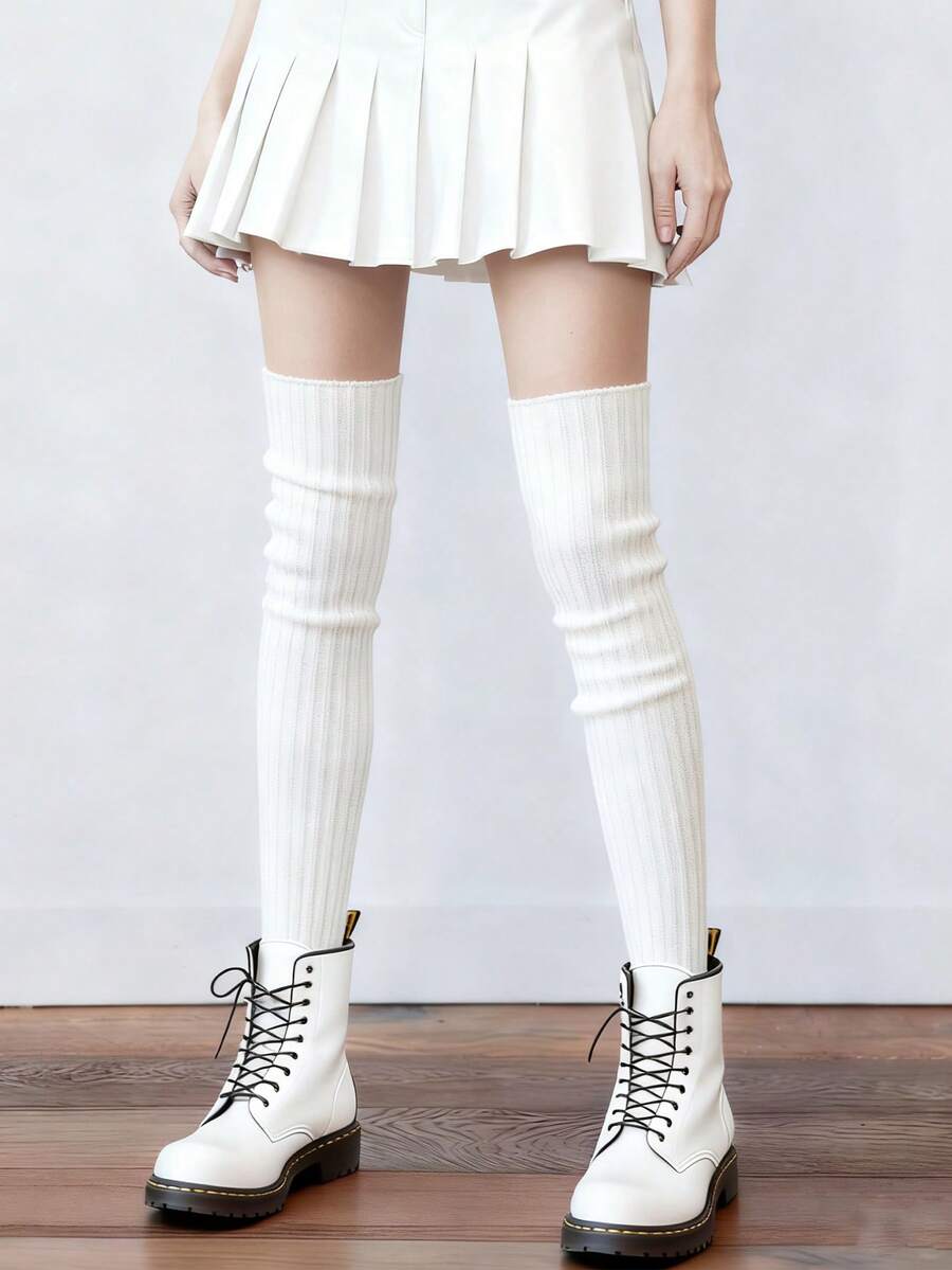Goth 1 Pair Of Over-Knee Knitted Socks, Warm Stacking Socks, Daily Versatile Basic White Leg Covers