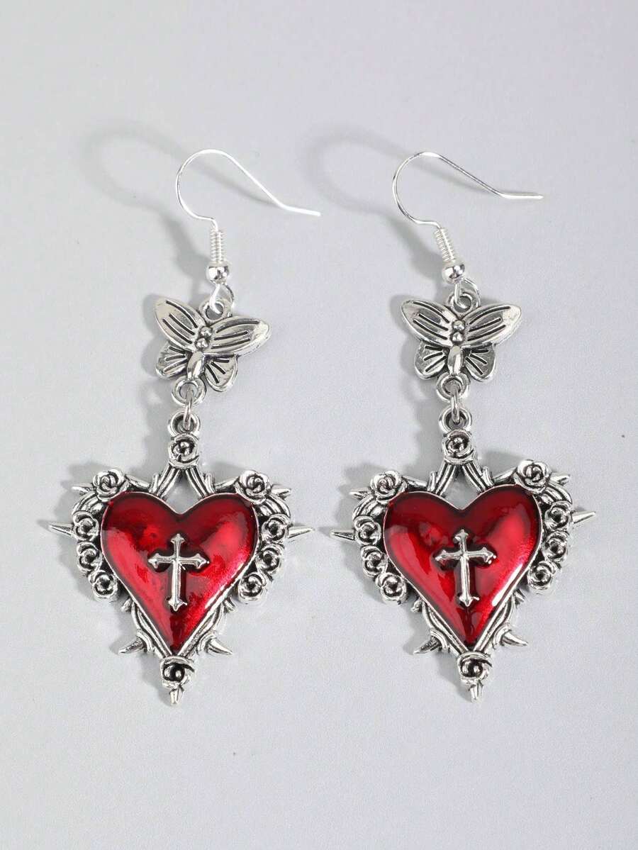 1 Pair Vintage Gothic Rock Style Rhinestone Spider, Butterfly, Cross, Heart Dangle Earrings