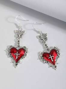 Goth 1 Pair Vintage Gothic Rock Style Rhinestone Spider, Butterfly, Cross, Heart Dangle Earrings