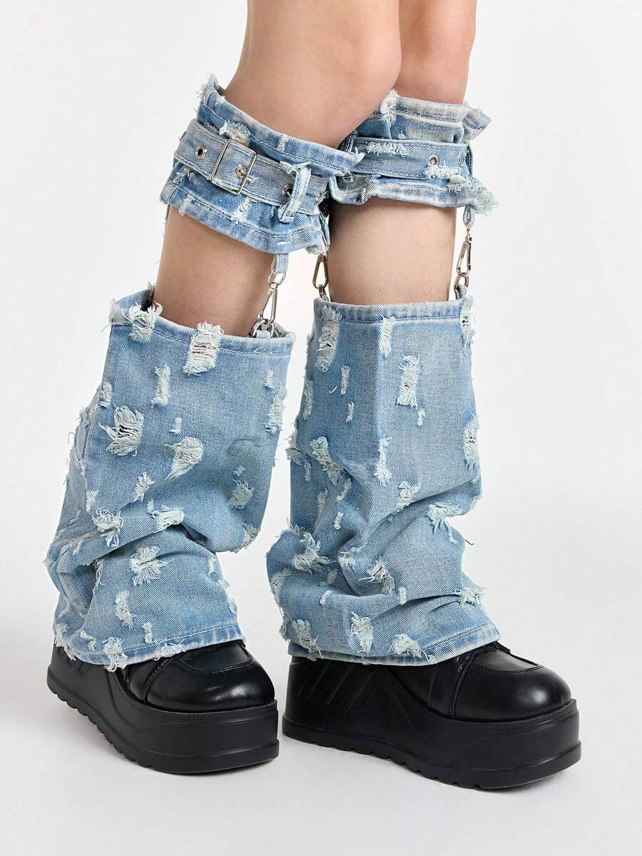 Goth 1 Pair Women's Fashionable Ripped Blue Leg Warmers