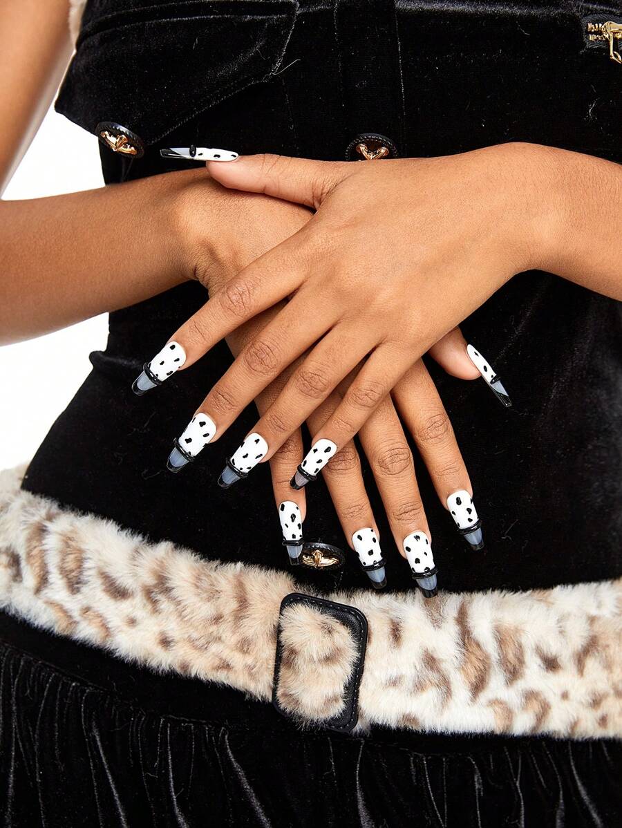 Goth 10pcs High-Quality Handmade Y2K Y2K-Style Detachable Cow Print Nail Stickers Suitable For Festivals, Parties, Dancing And Everyday Wear